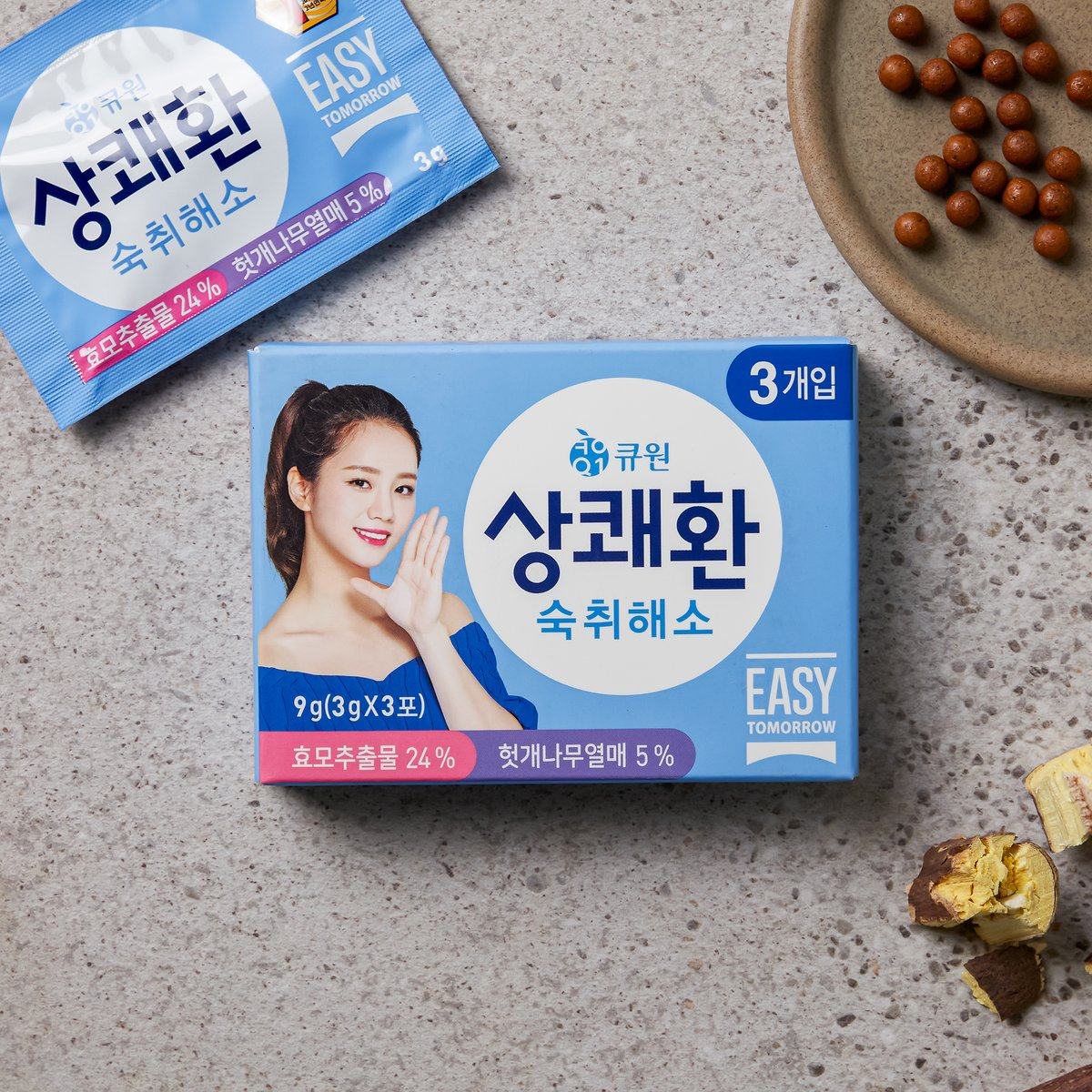 Корейский подлинный агент похмелья Q1 Light Cool Relieces Head/Pain Hopper Bartender Pill, чтобы облегчить боль 3G*3 упаковки