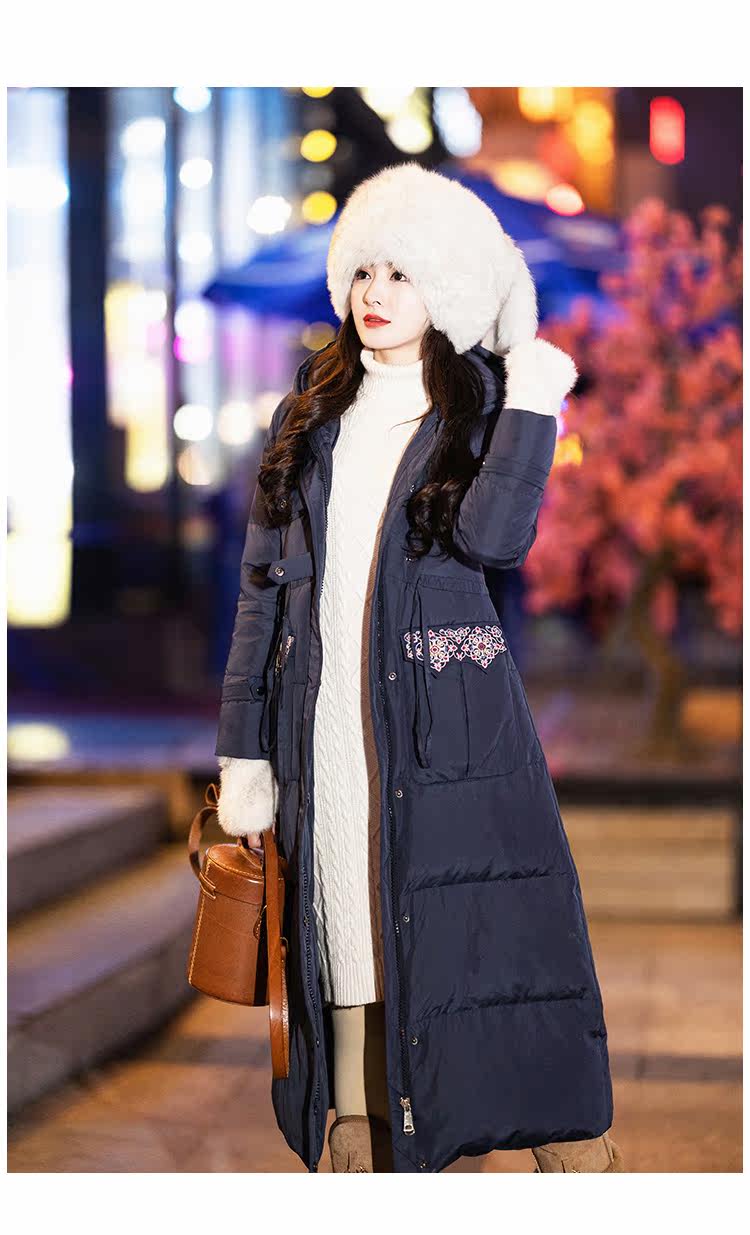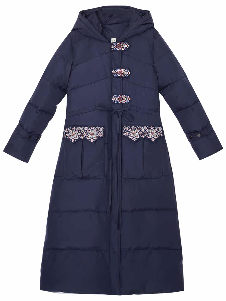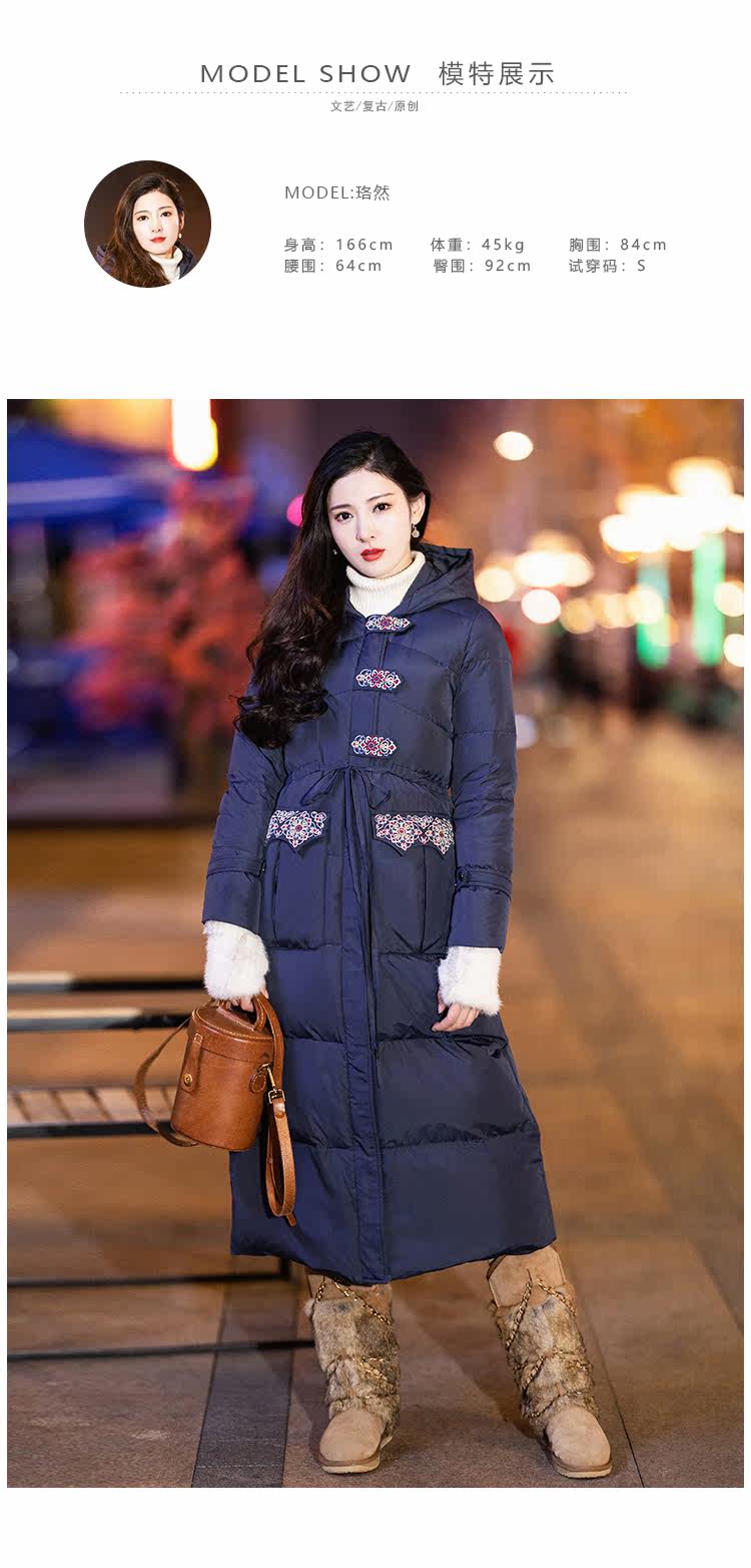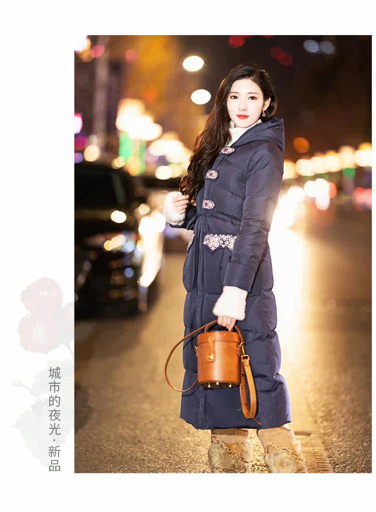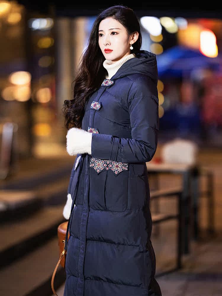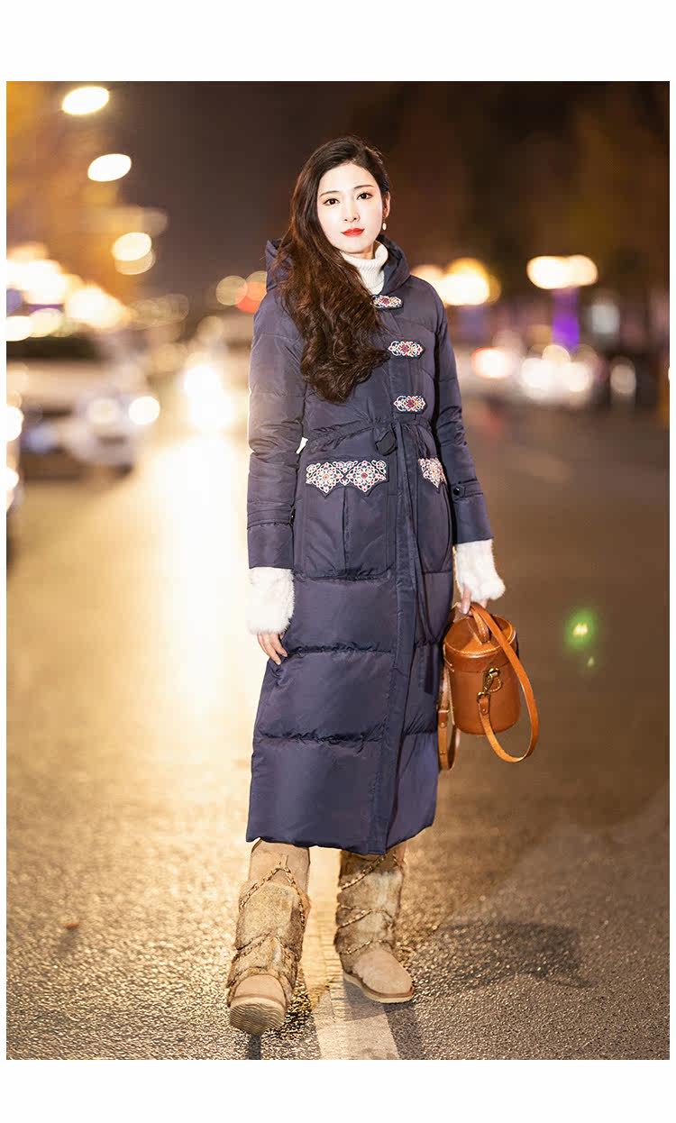 Оригинальный длинный пуховик, приталенный корсет, бархатная куртка, с вышивкой, средней длины, 2020, утиный пух