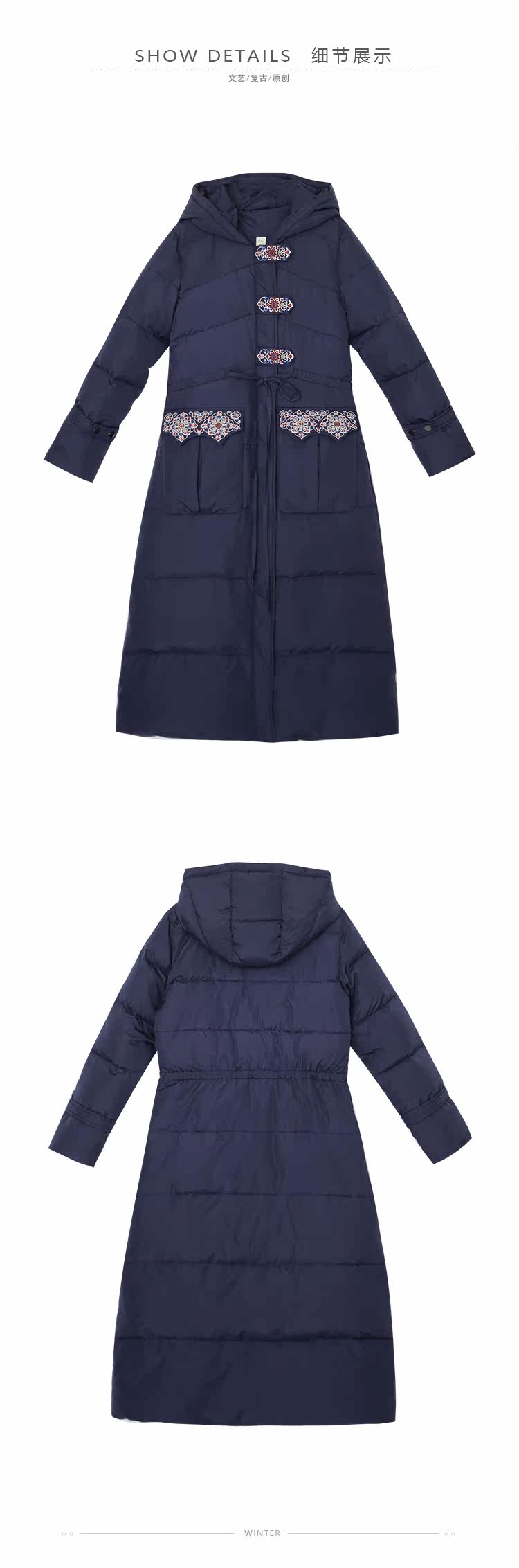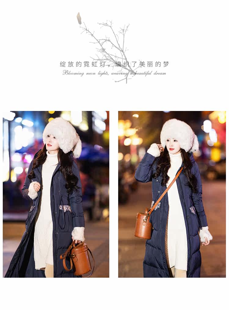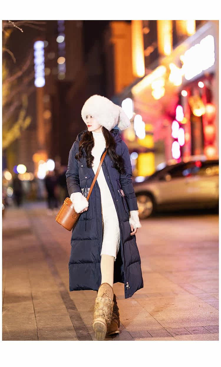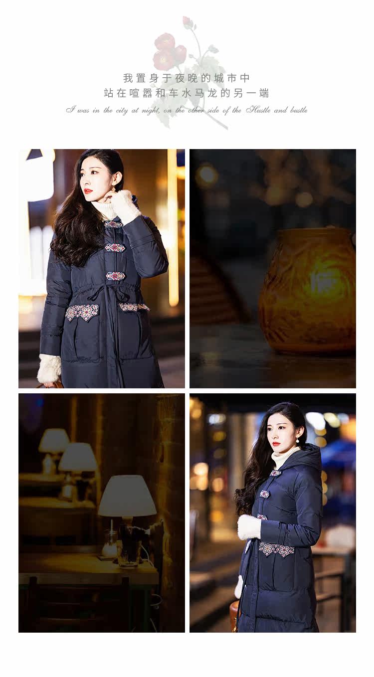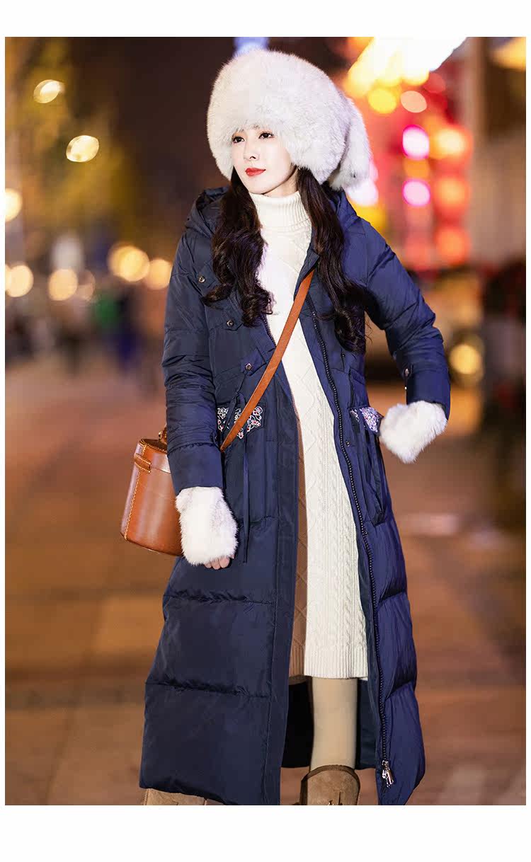 Оригинальный длинный пуховик, приталенный корсет, бархатная куртка, с вышивкой, средней длины, 2020, утиный пух