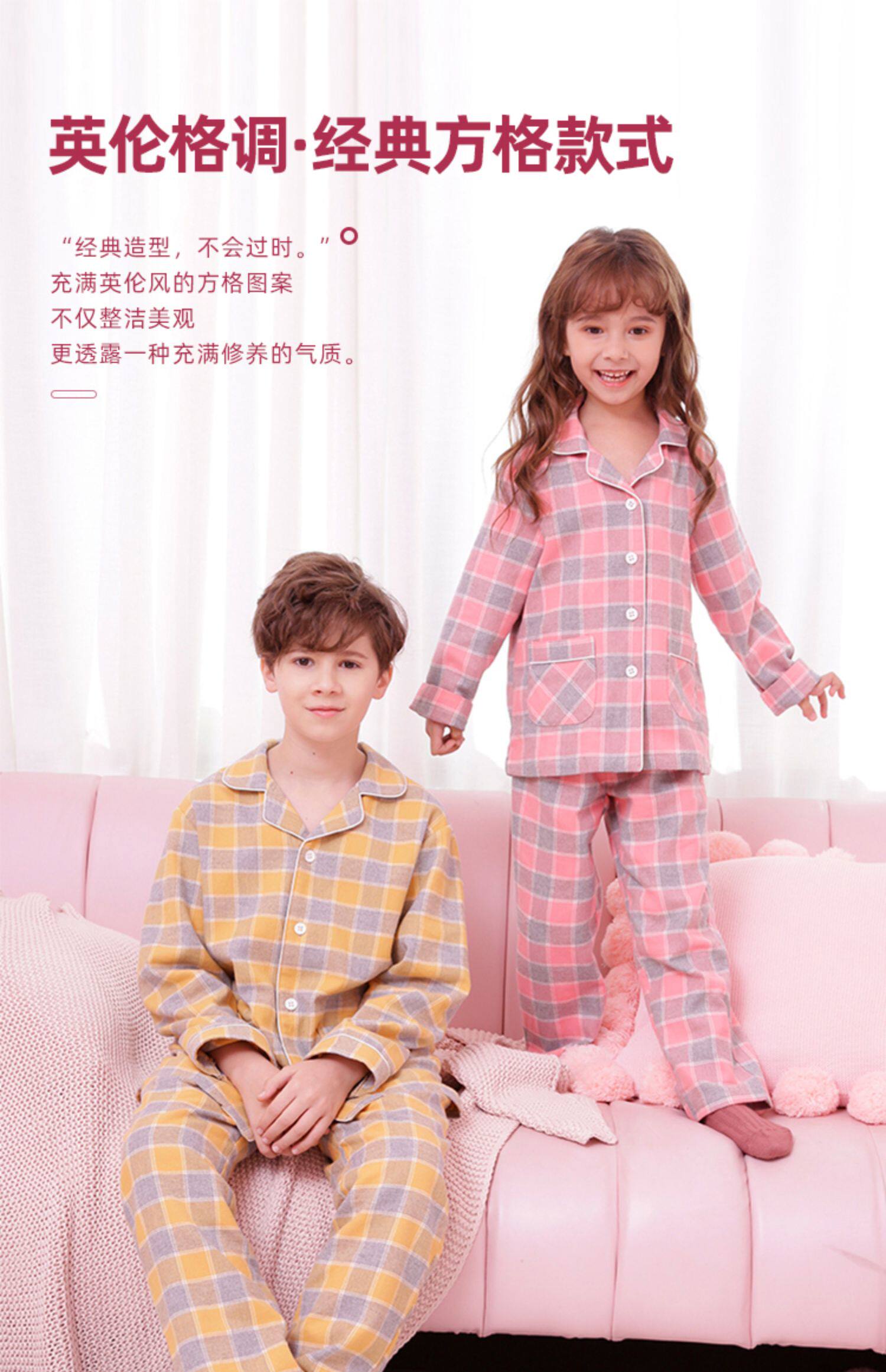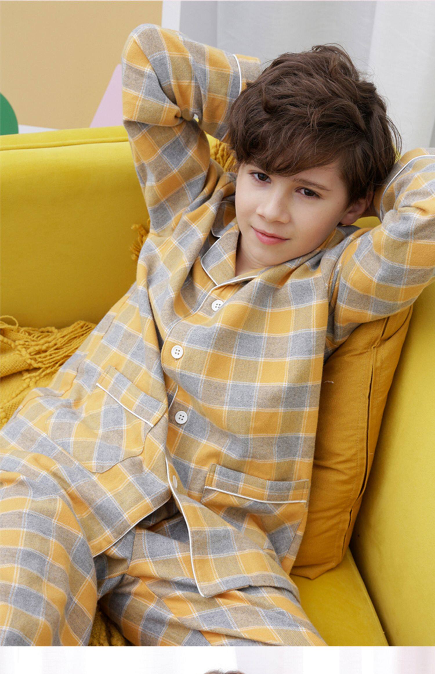Детская пижама, осенний хлопковый комплект подходит для мужчин и женщин, в британском стиле