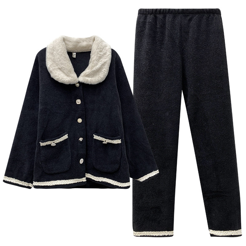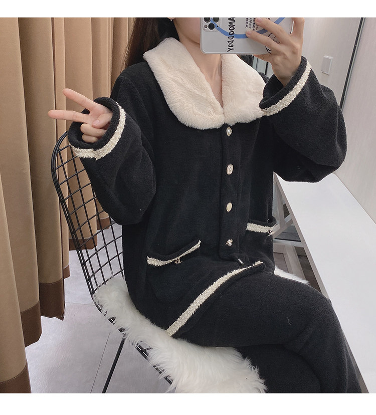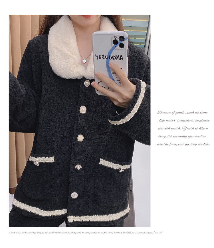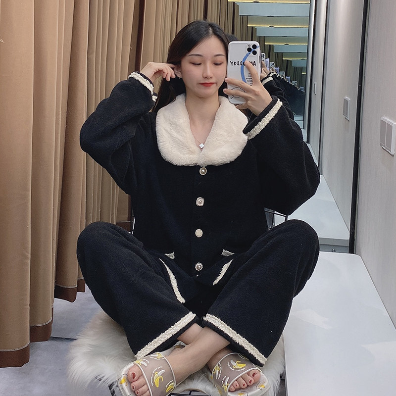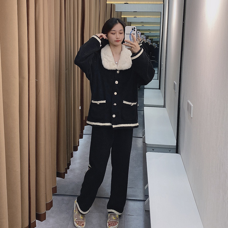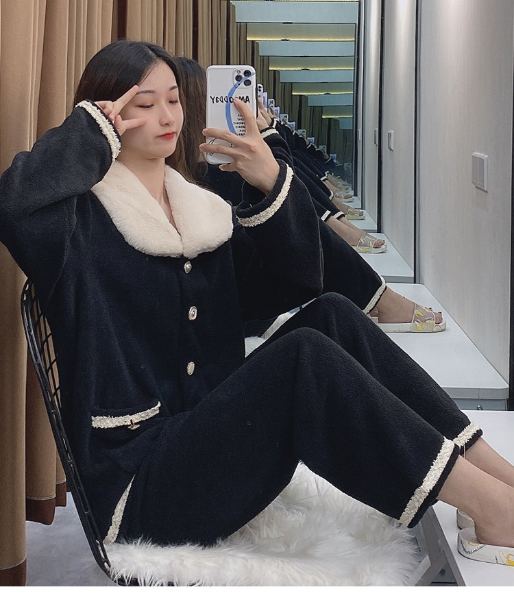 Черная демисезонная коралловая бархатная утепленная фланелевая пижама, в стиле Шанель, 2020 года
