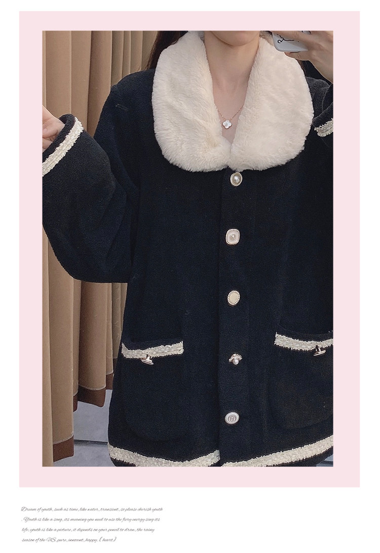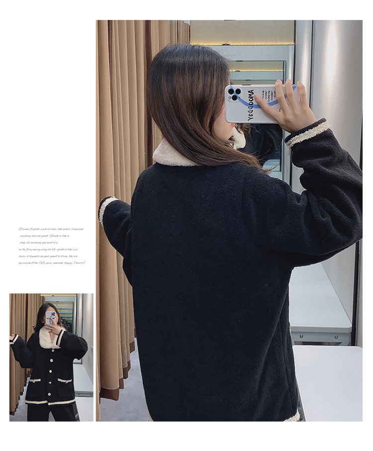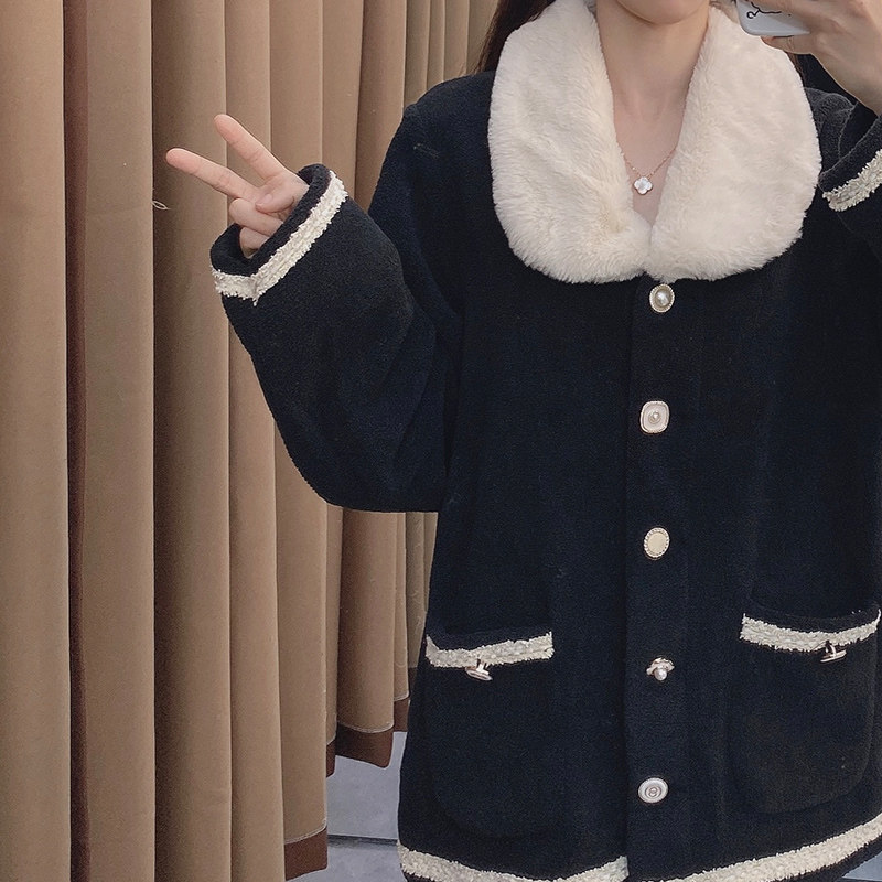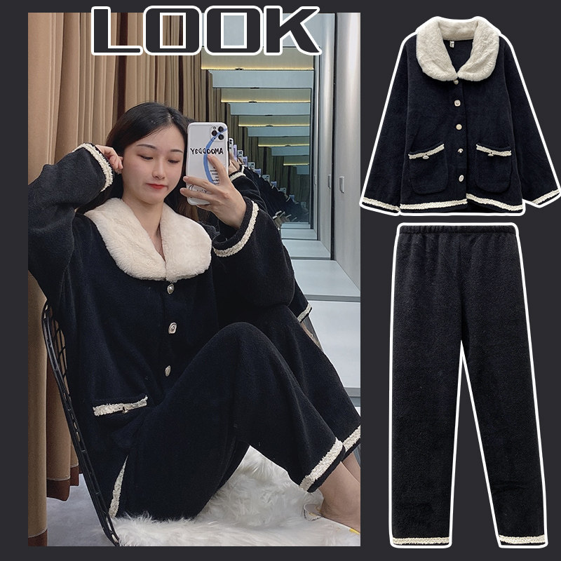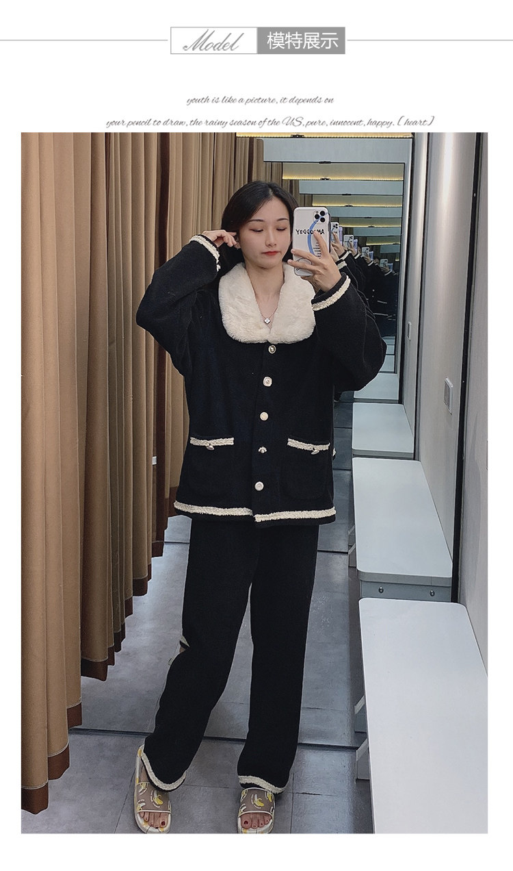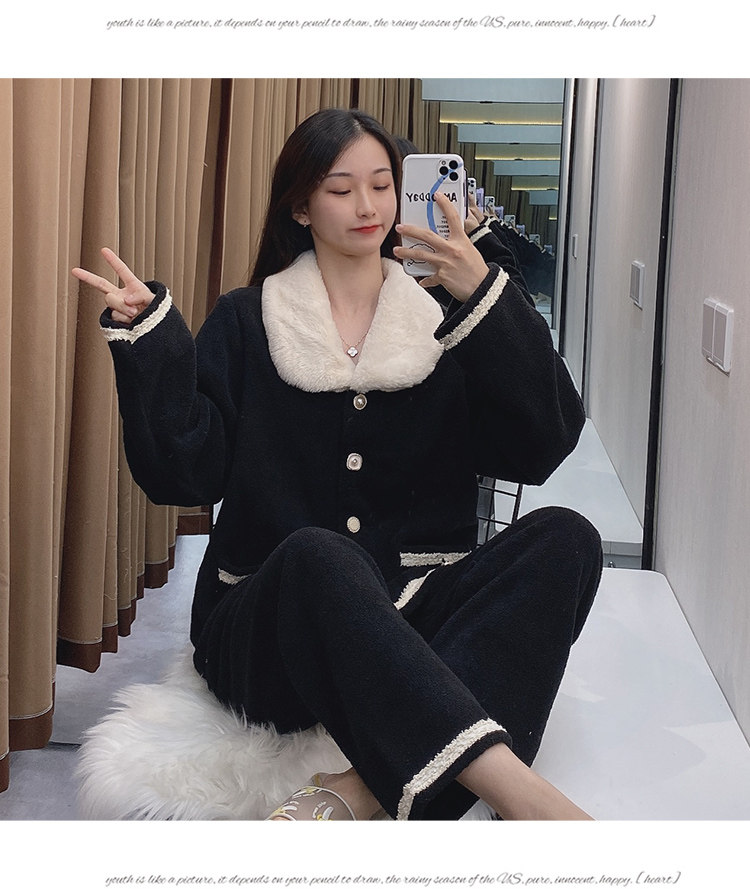 Черная демисезонная коралловая бархатная утепленная фланелевая пижама, в стиле Шанель, 2020 года
