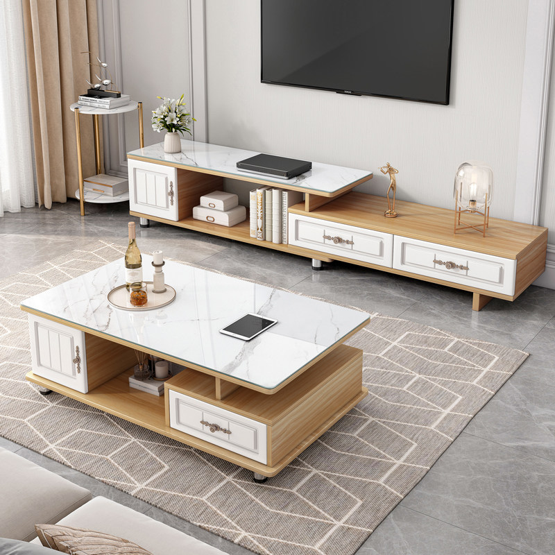 Телевизионный шкаф кофейный столик комбинация европейская рок -тарелка маленькая квартира телескопическая простота, современный легкий роскошный стеклянный шкаф