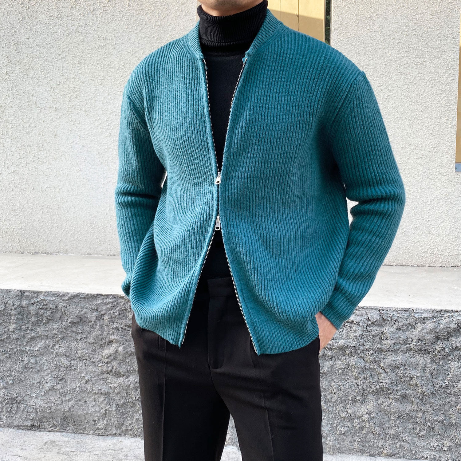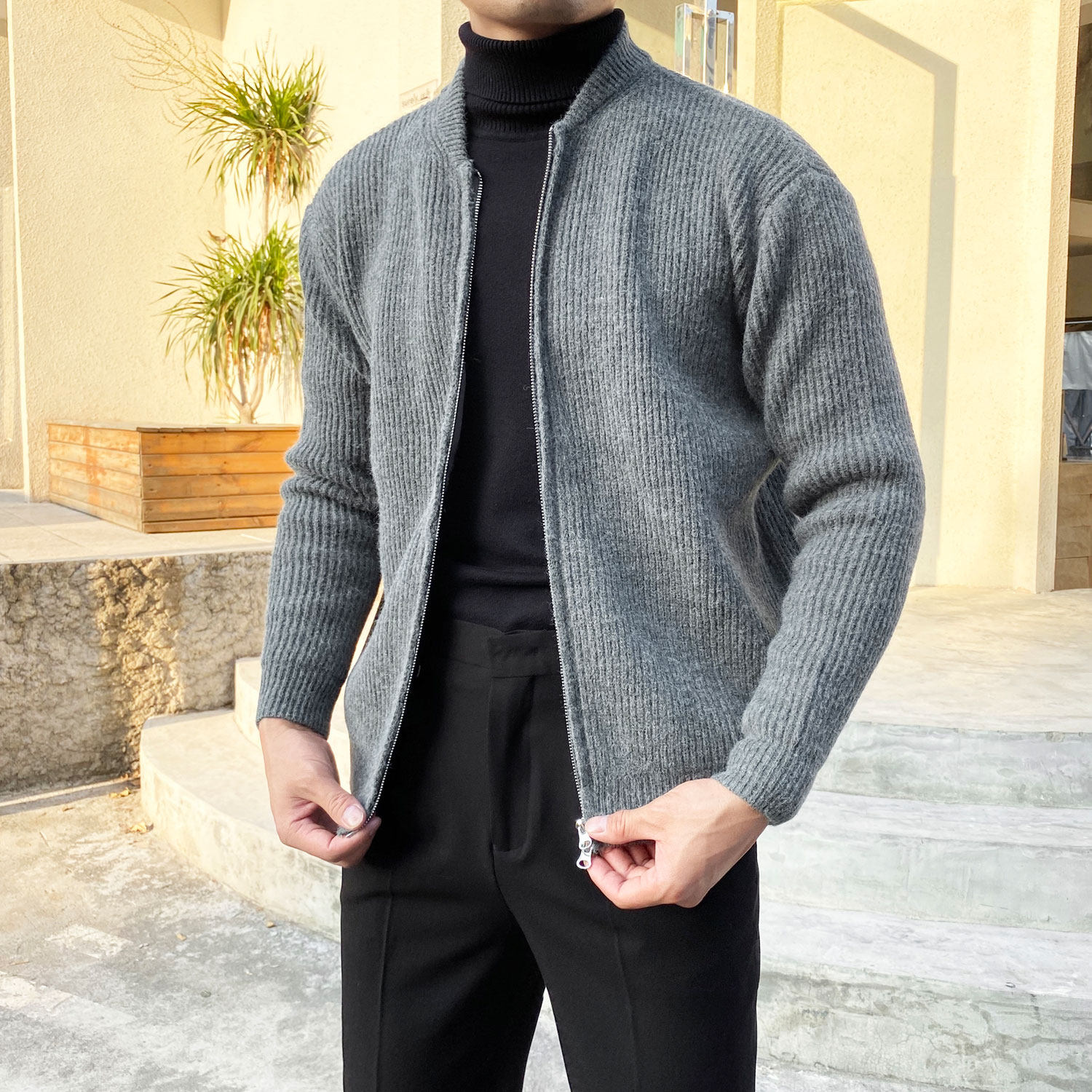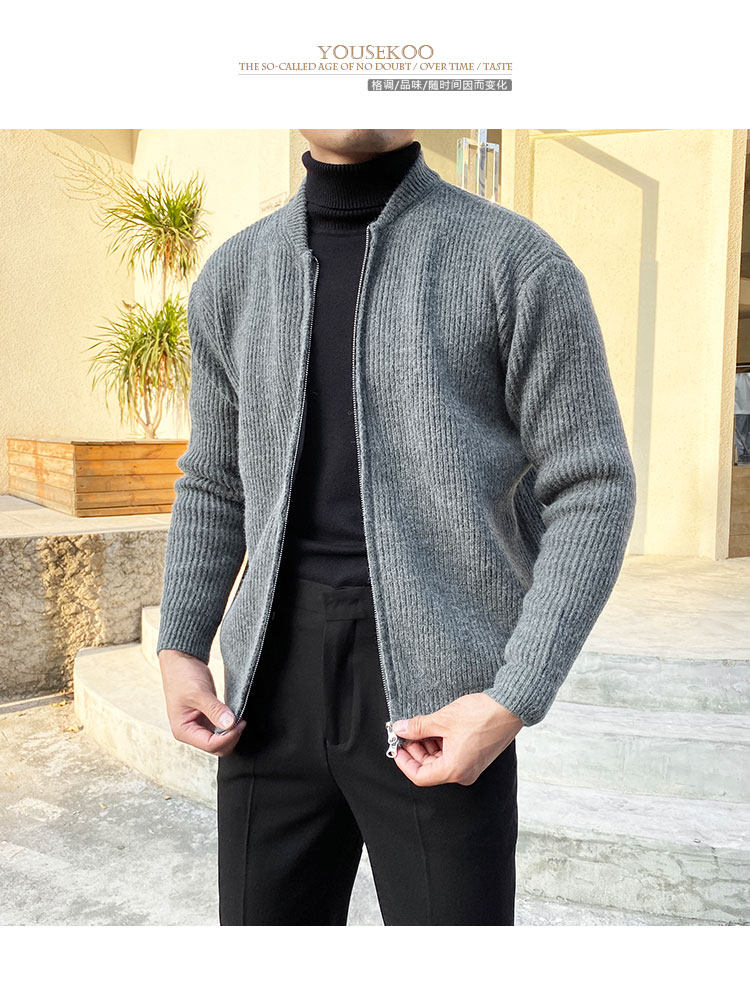 Трикотажный кардиган, трендовый утепленный свитер, демисезонная куртка с молнией для отдыха