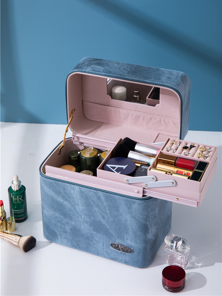 Джинсовая профессиональная портативная косметичка, косметический ящик для хранения, премиум класс