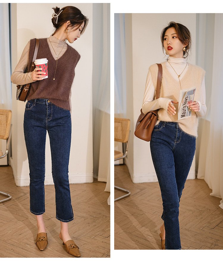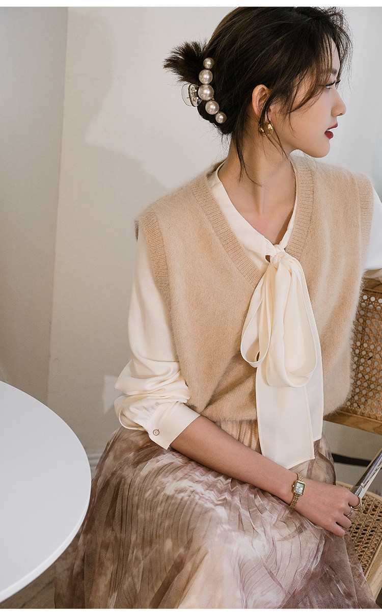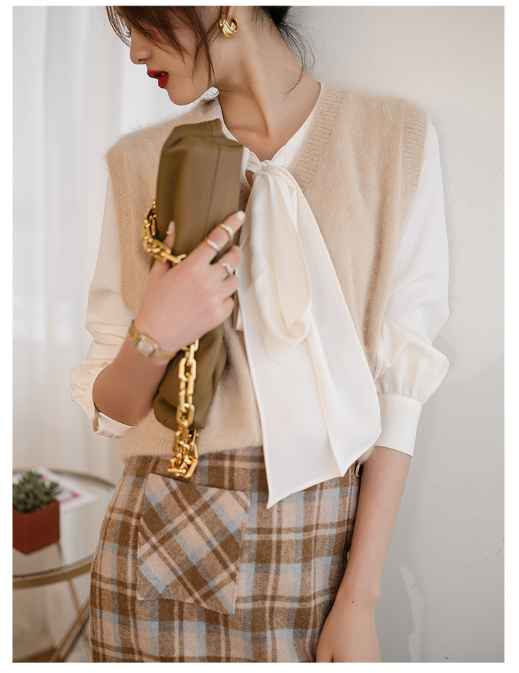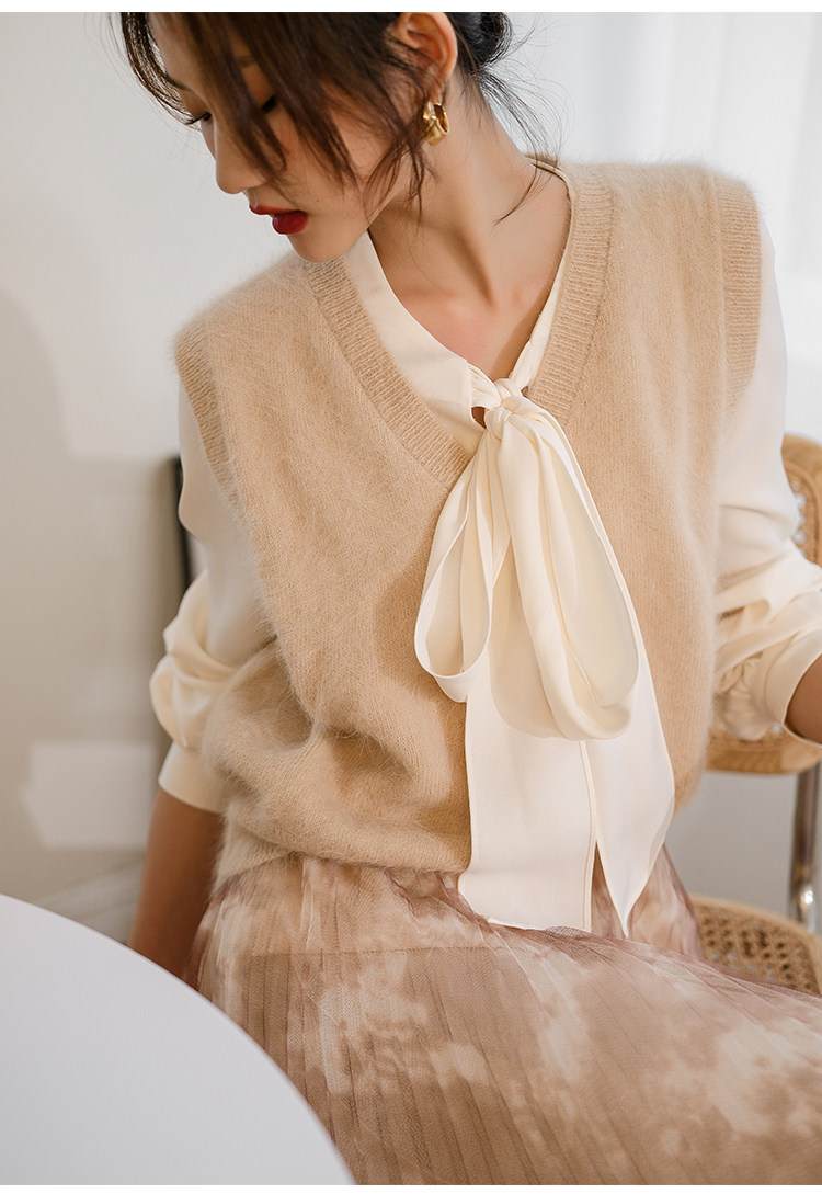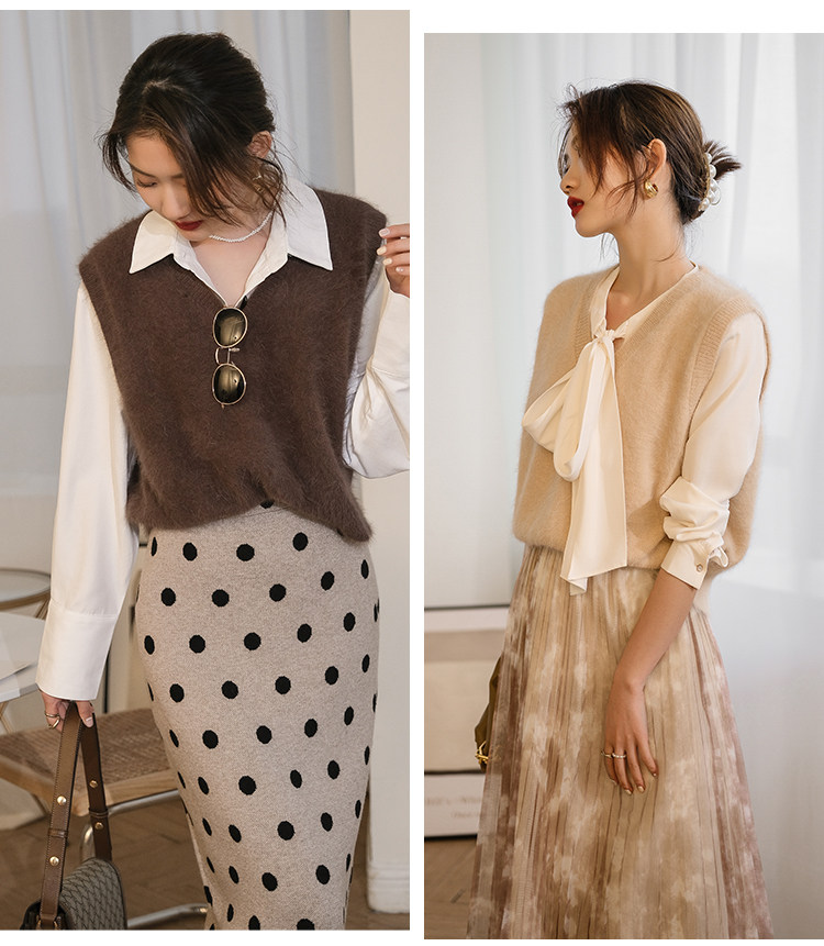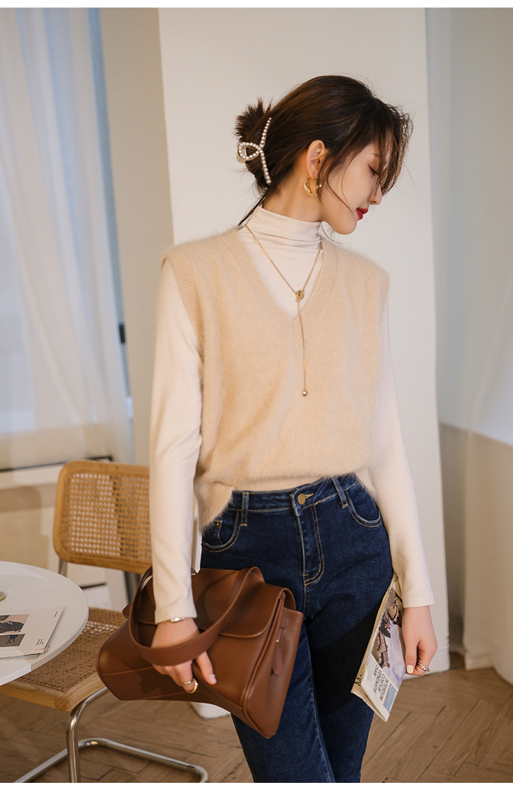 Демисезонный жилет, бархатный трикотажный модный свитер, V-образный вырез, 2020, французский стиль, в западном стиле