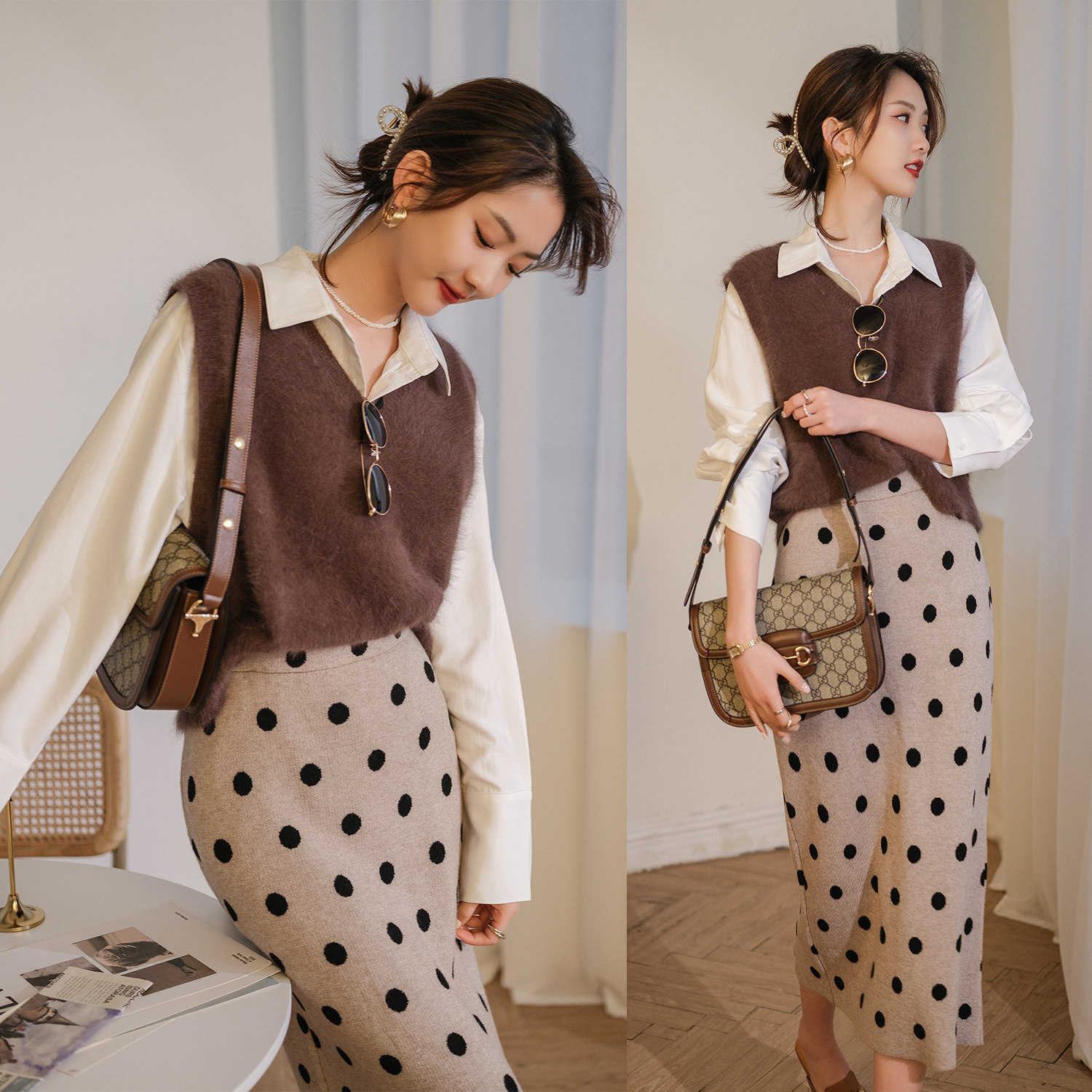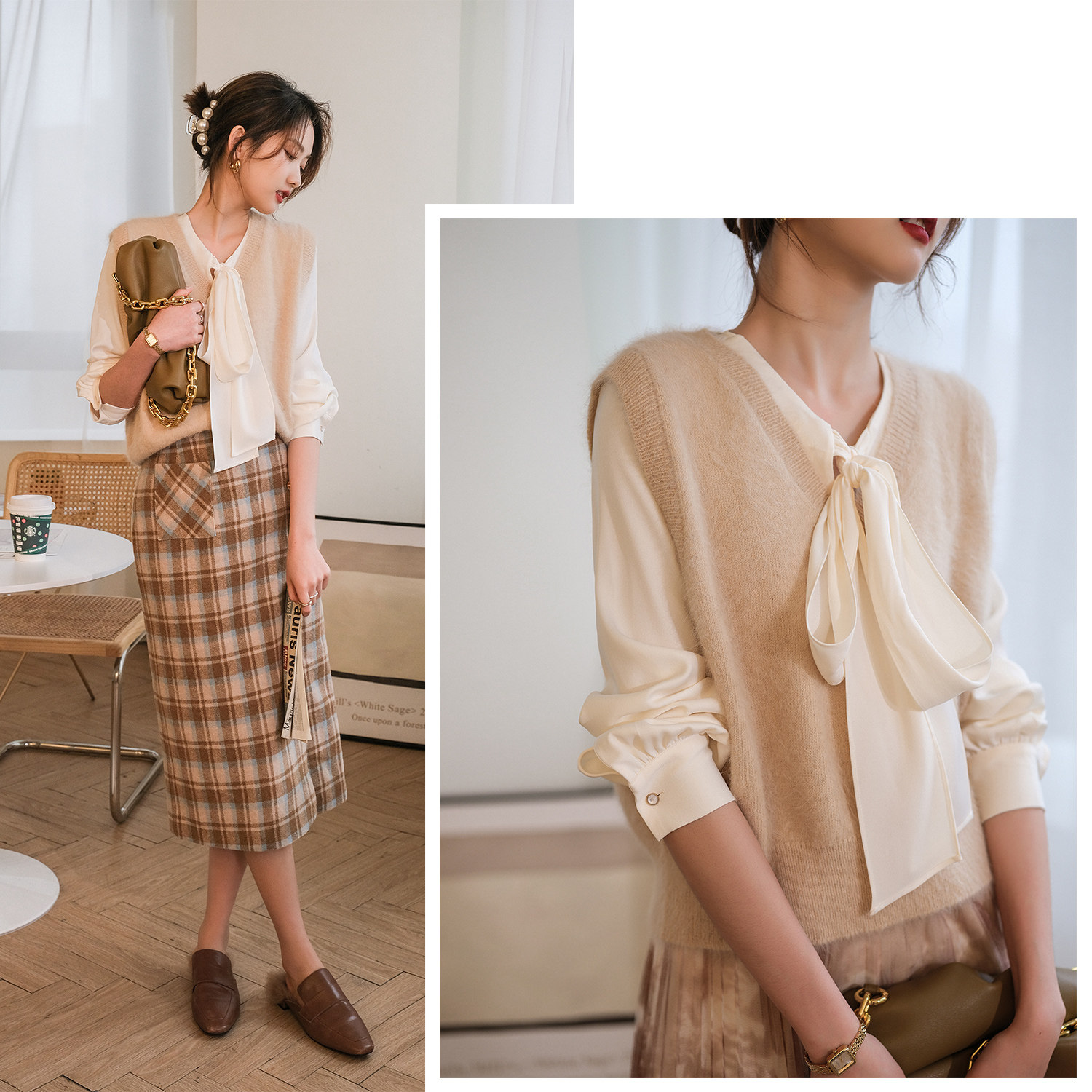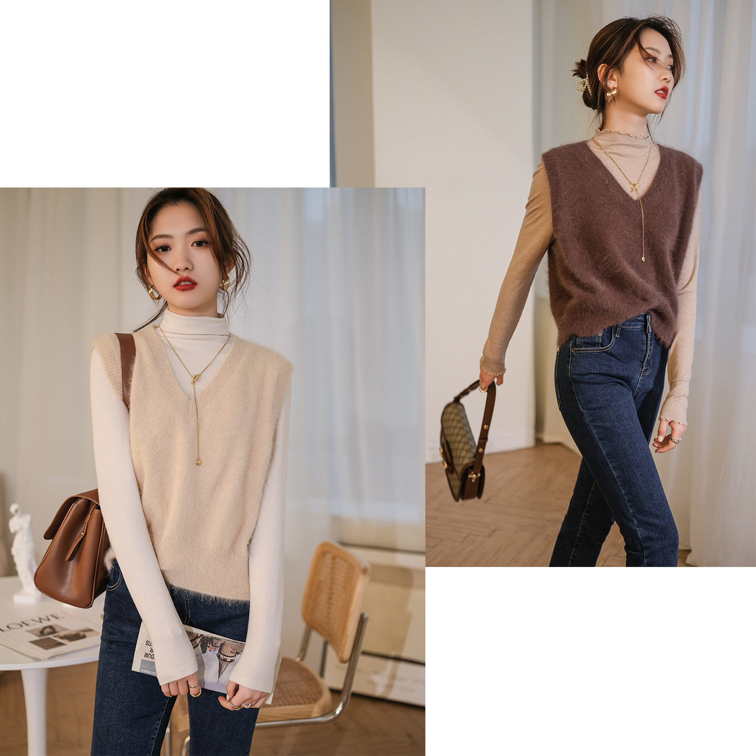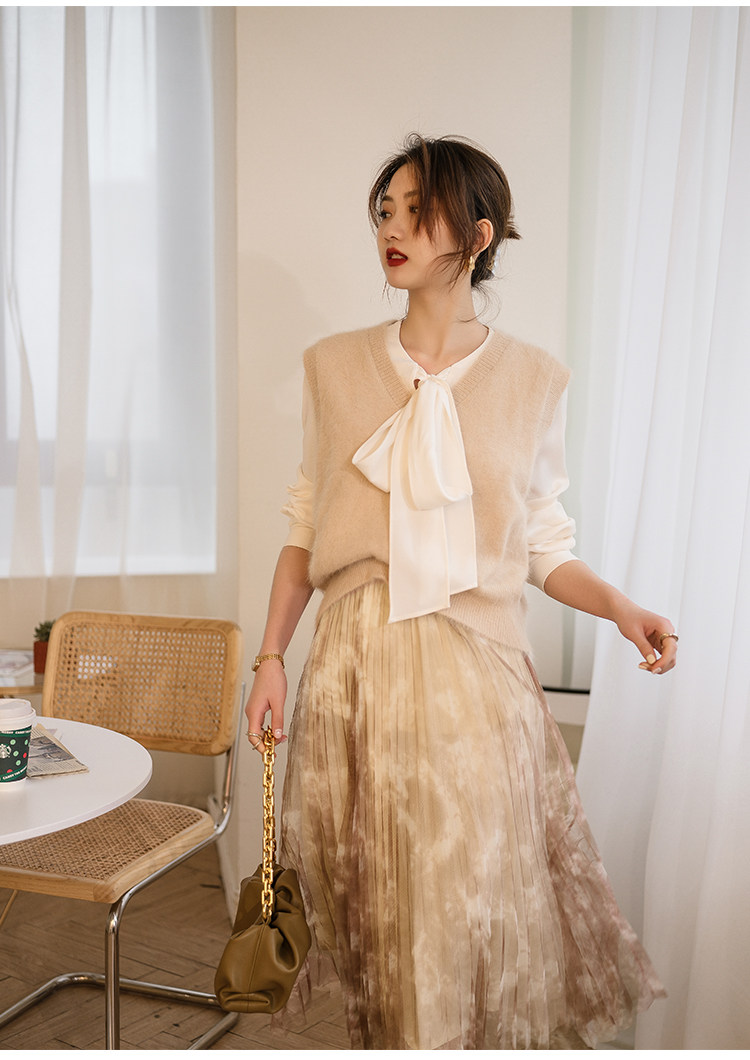 Демисезонный жилет, бархатный трикотажный модный свитер, V-образный вырез, 2020, французский стиль, в западном стиле