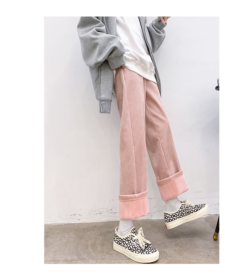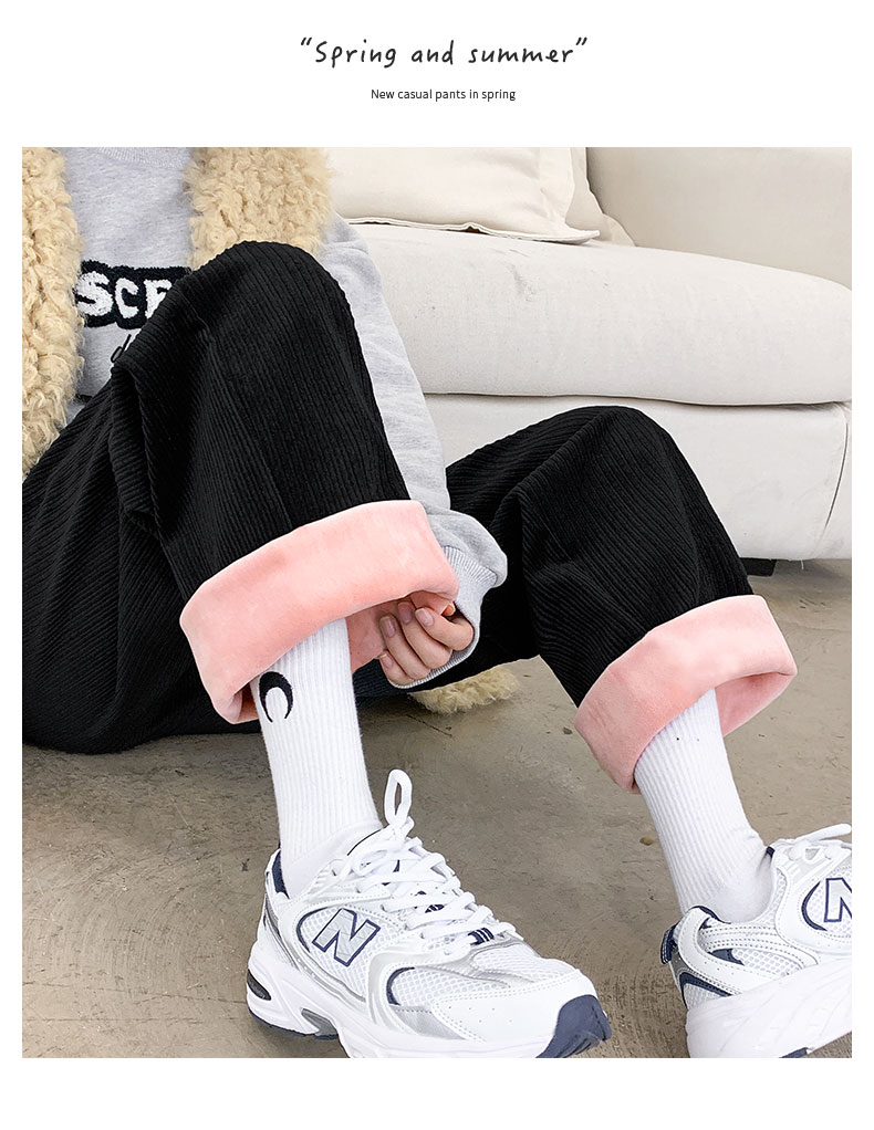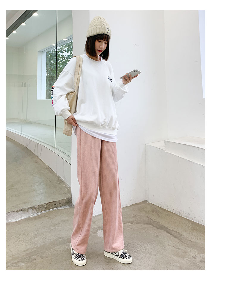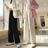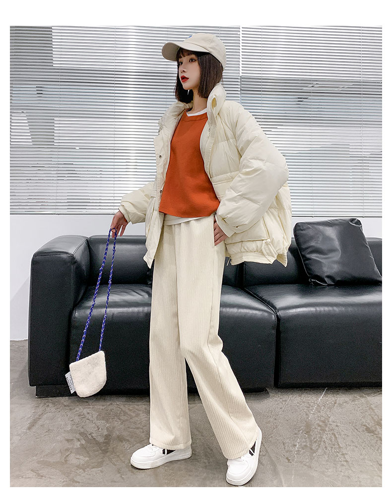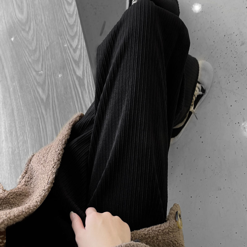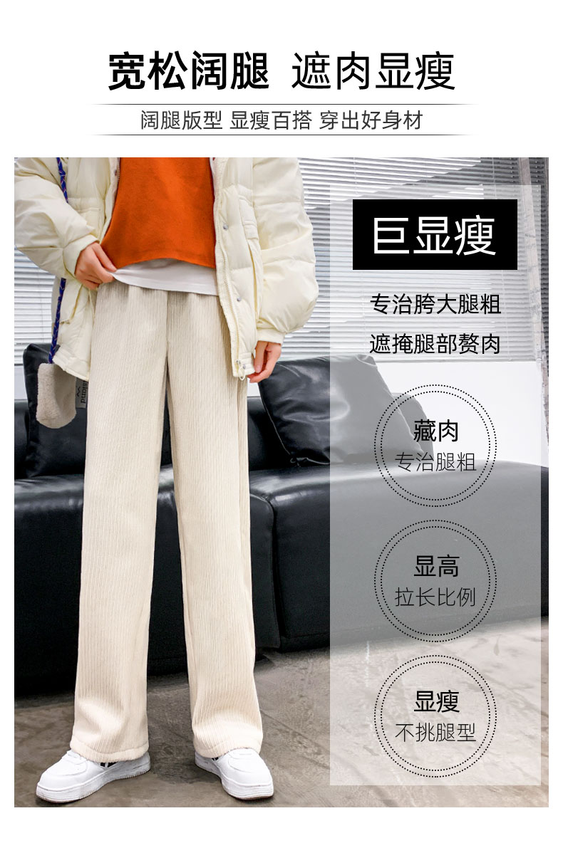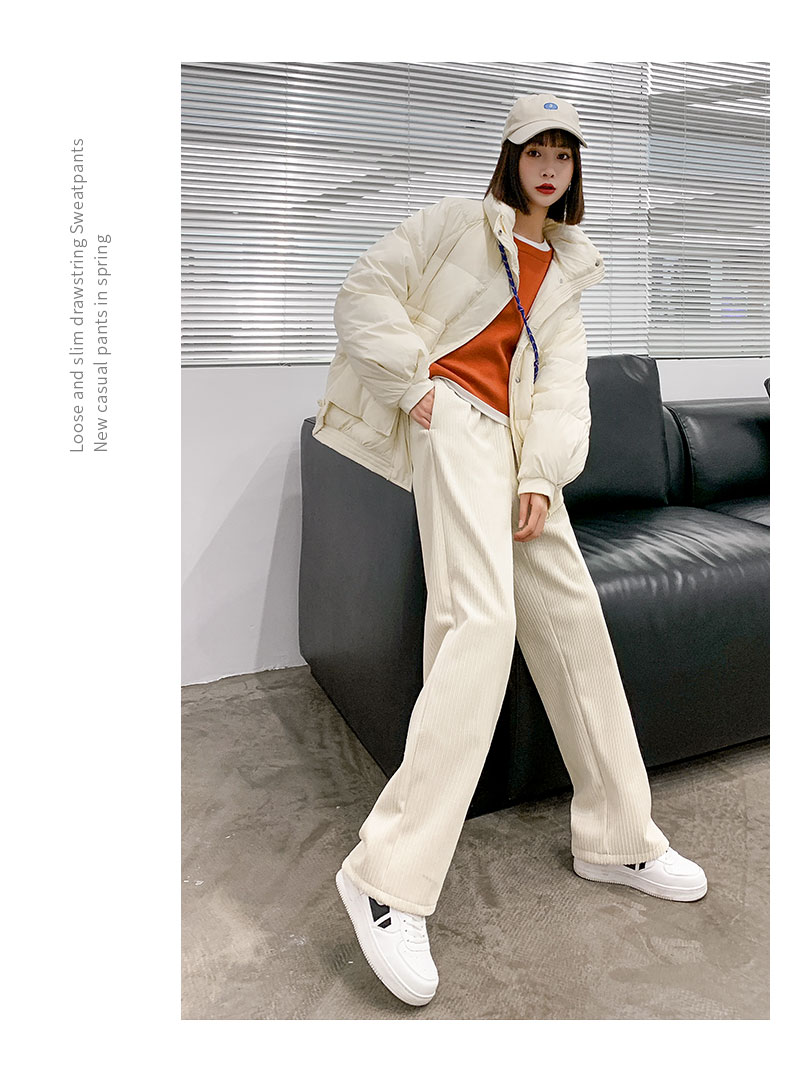 Вельветовые демисезонные штаны, белые повседневные брюки для отдыха, свободный прямой крой, увеличенная толщина