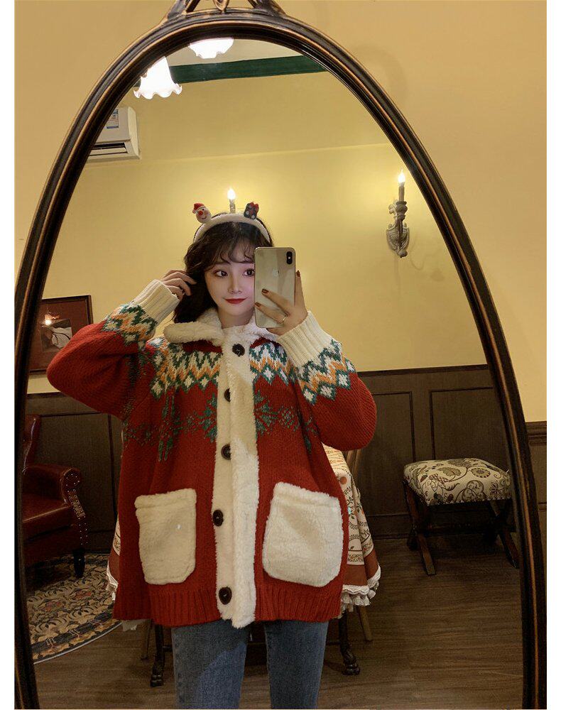 Красный ретро свитер, свежий кардиган, коллекция 2021, оверсайз