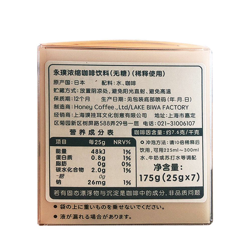 Концентрированный черный кофейный напиток Yongpu (без сахара) 25 г*7, импортированный из Японии