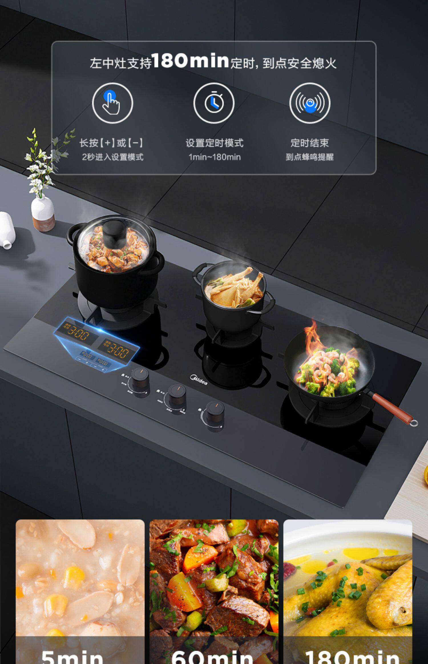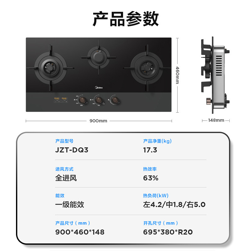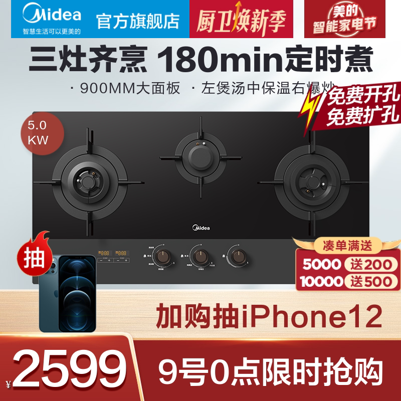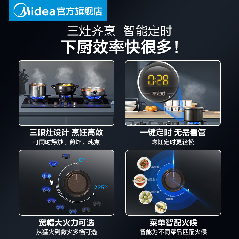 Midea DQ3 Три -эй -эймовая газовая плита Home Multi -Eeye Plant Hartive Gas Desktop, встроенный из трех -трех -головных плиты
