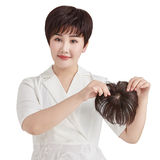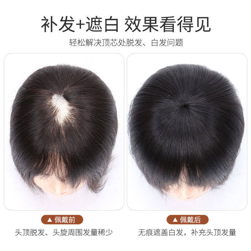 Легкий и тонкий парик, челка на макушку изготовленная из настоящих волос, придает объем