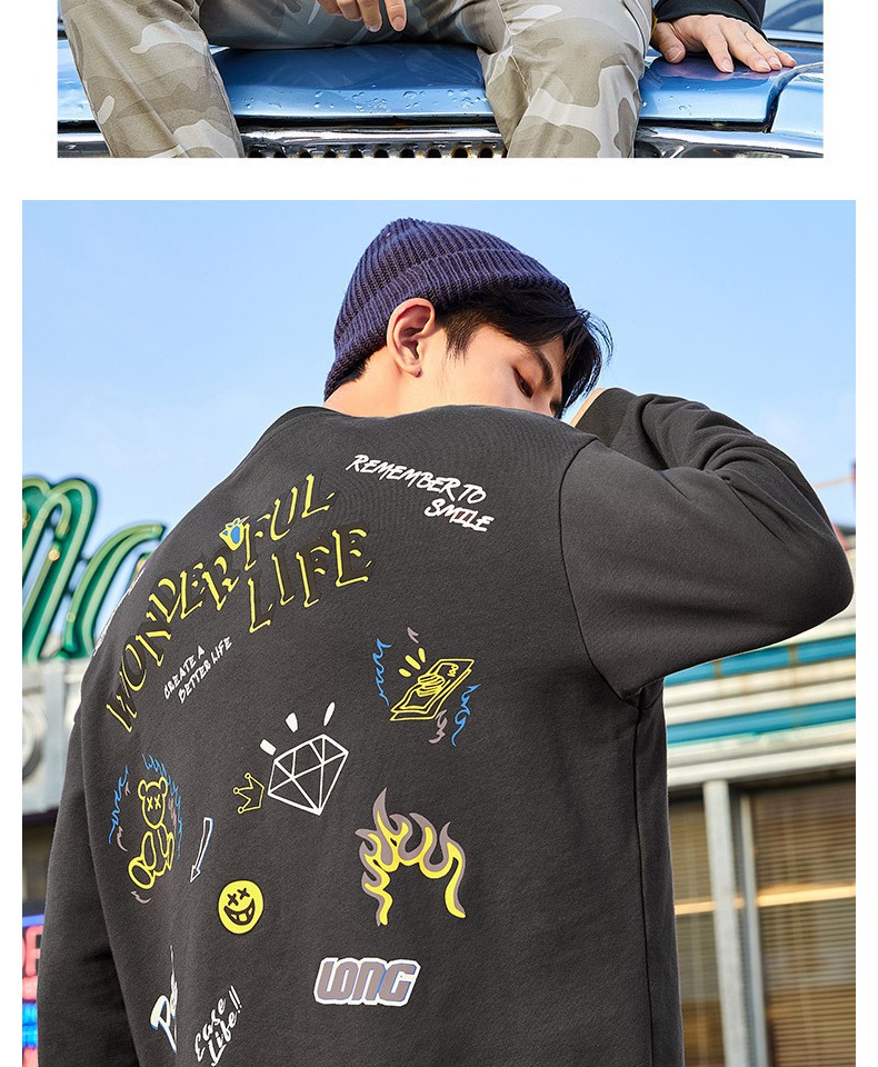 Полная толстовка мужская модная модная ins без круглая шея.
