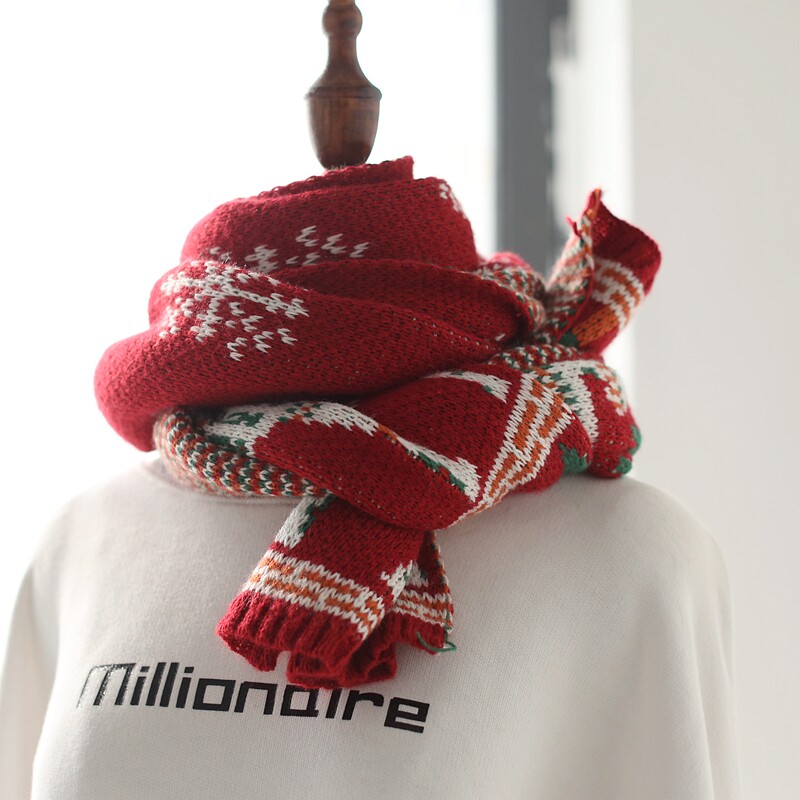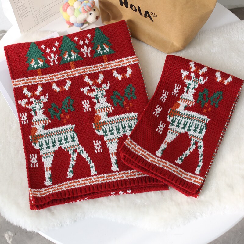 Милый красный трикотажный ретро детский шарф, семейный стиль, в корейском стиле, подарок на день рождения