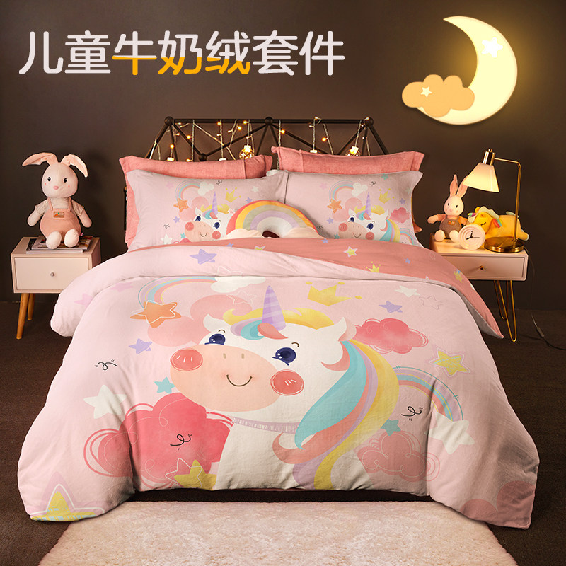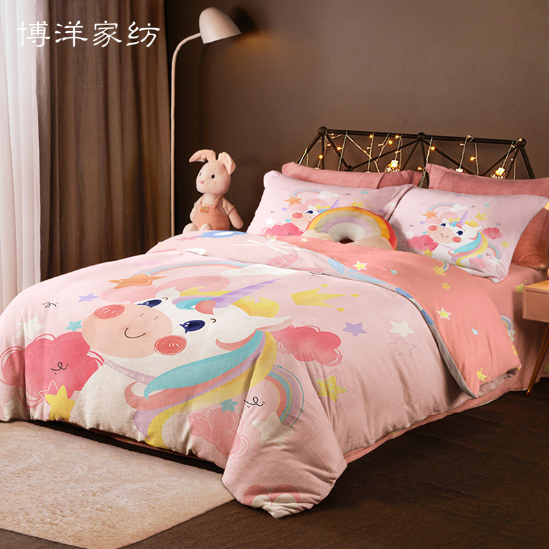 博洋 Коралловый зимний детский мультяшный комплект, флисовый фланелевый пододеяльник, покрывало, 4 предмета