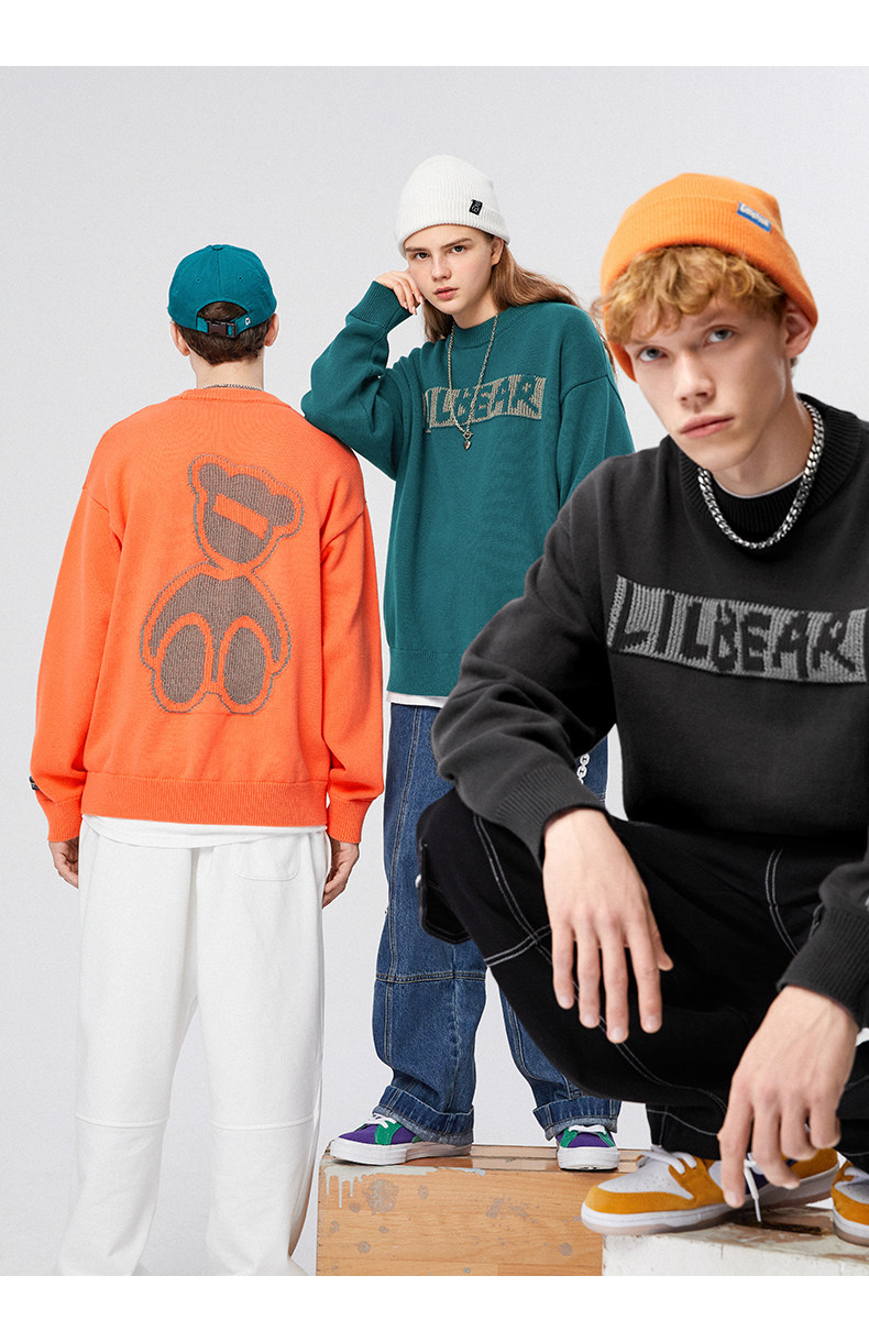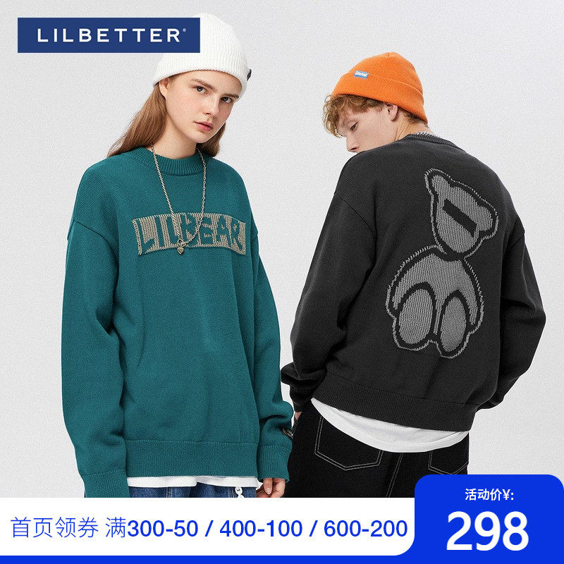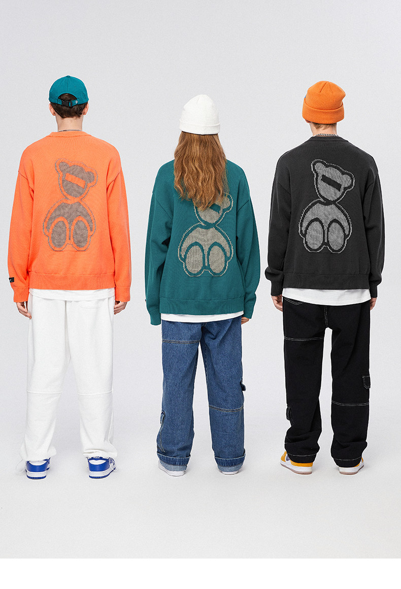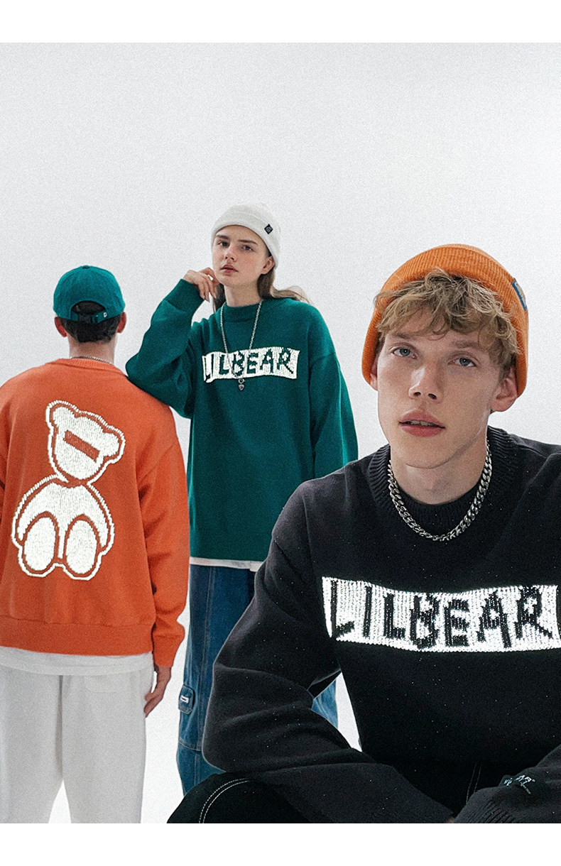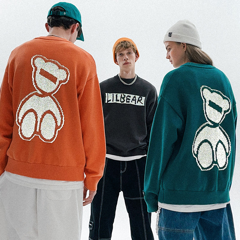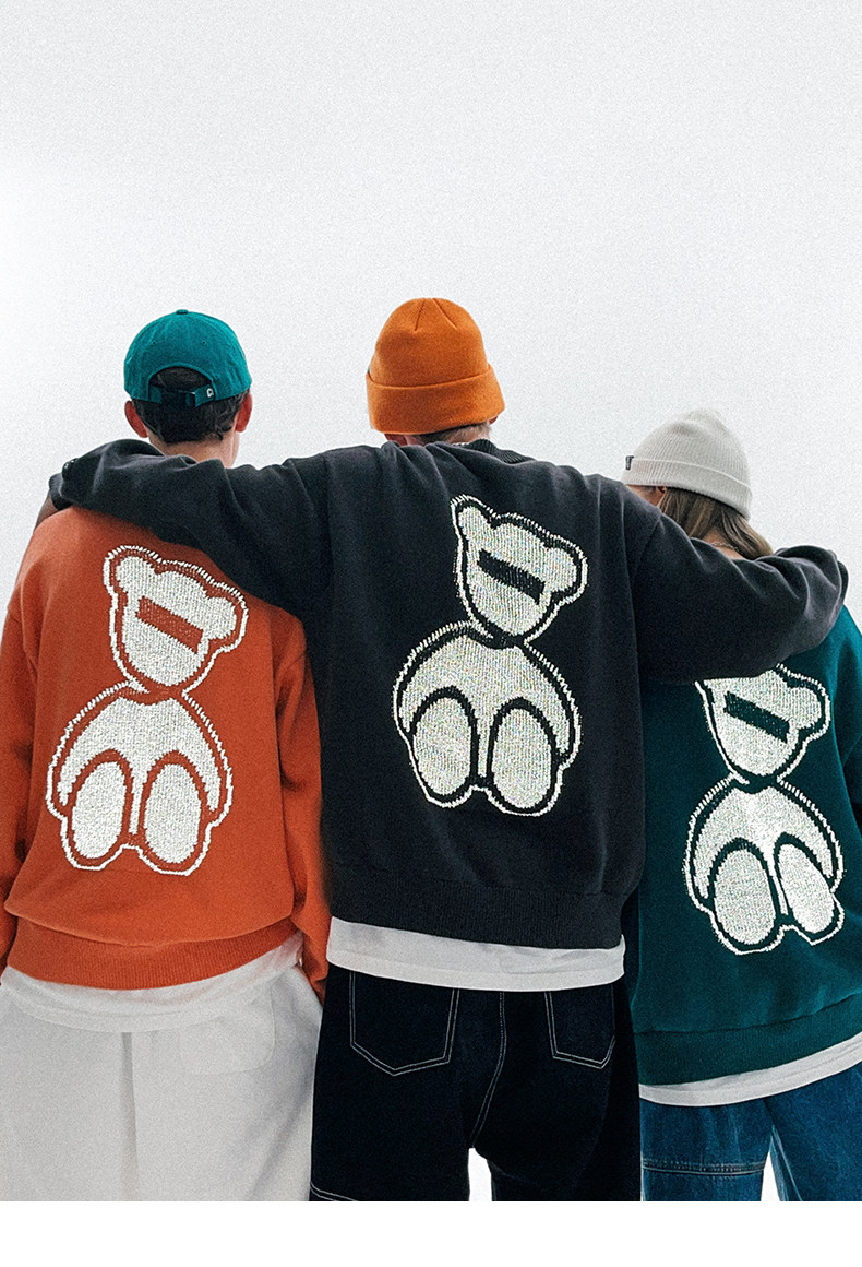 Lilbetter Трикотажный свитер, светоотражающий базовый приятный телу пуховик, трендовая парная одежда для влюбленных, с медвежатами