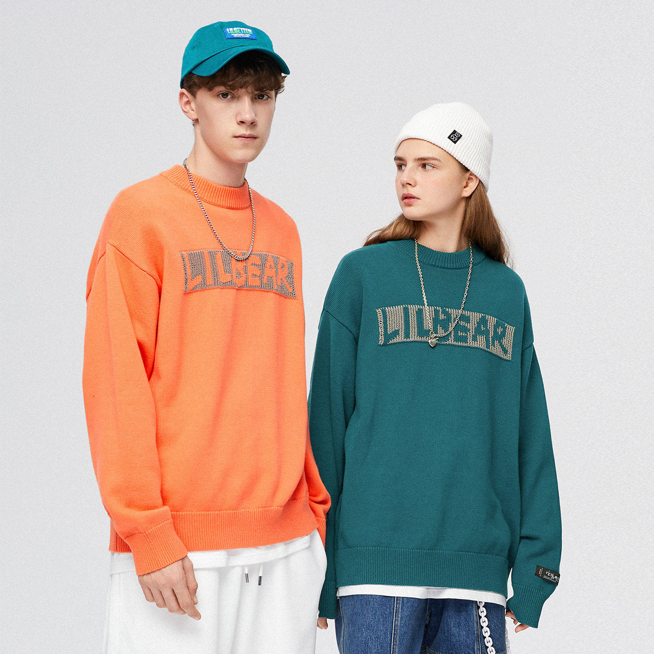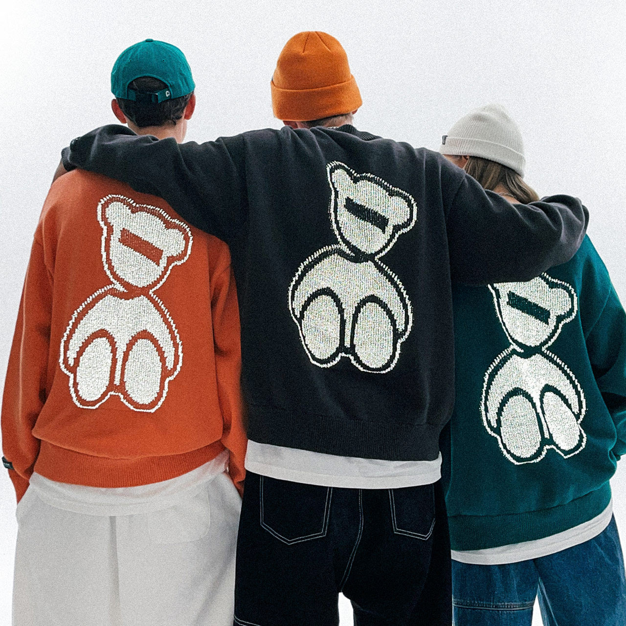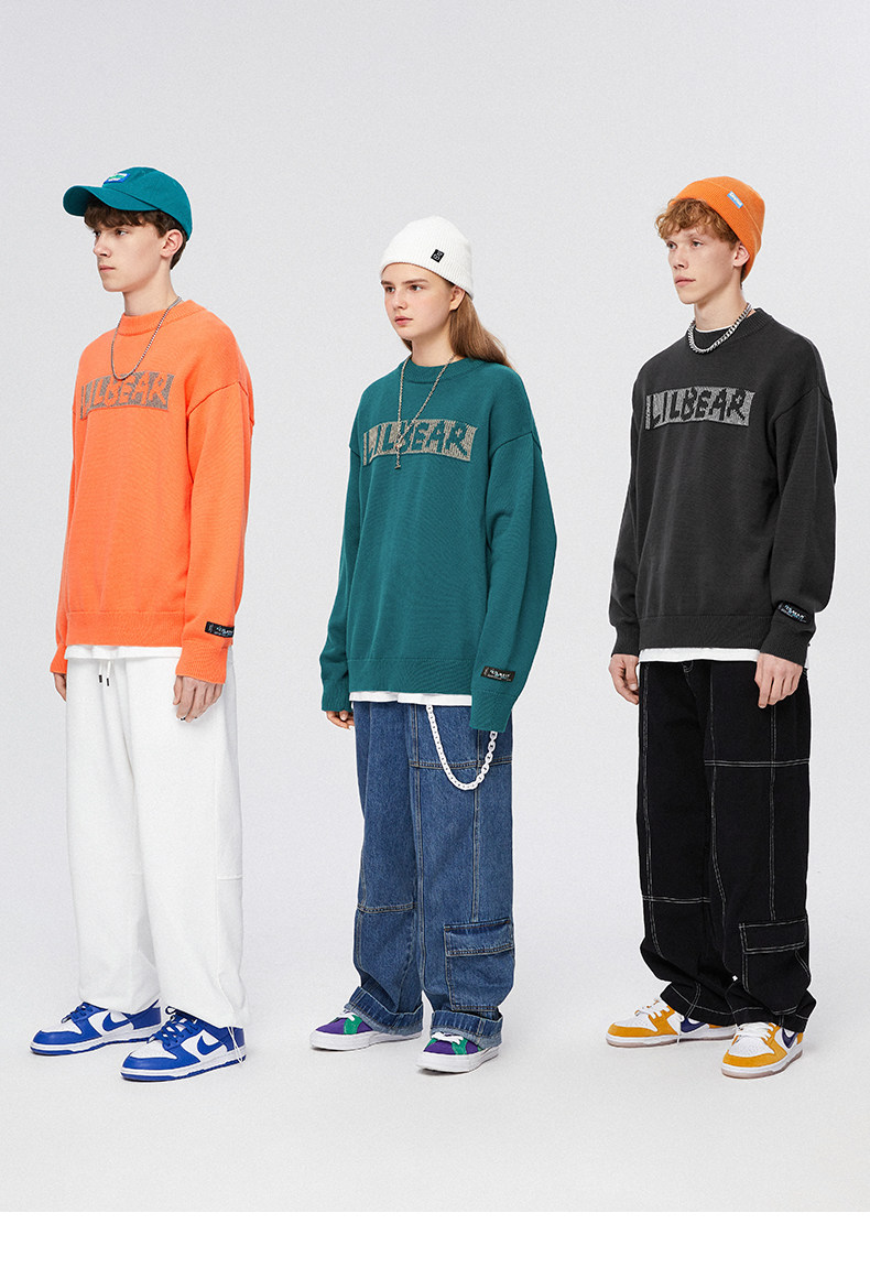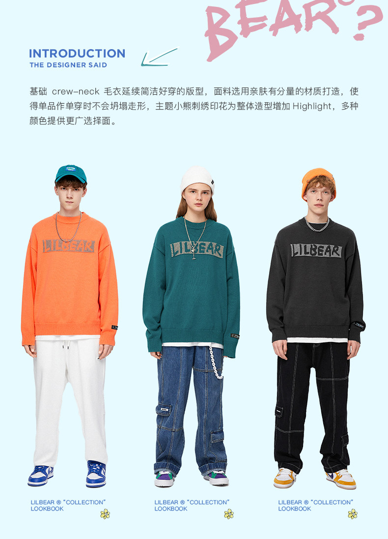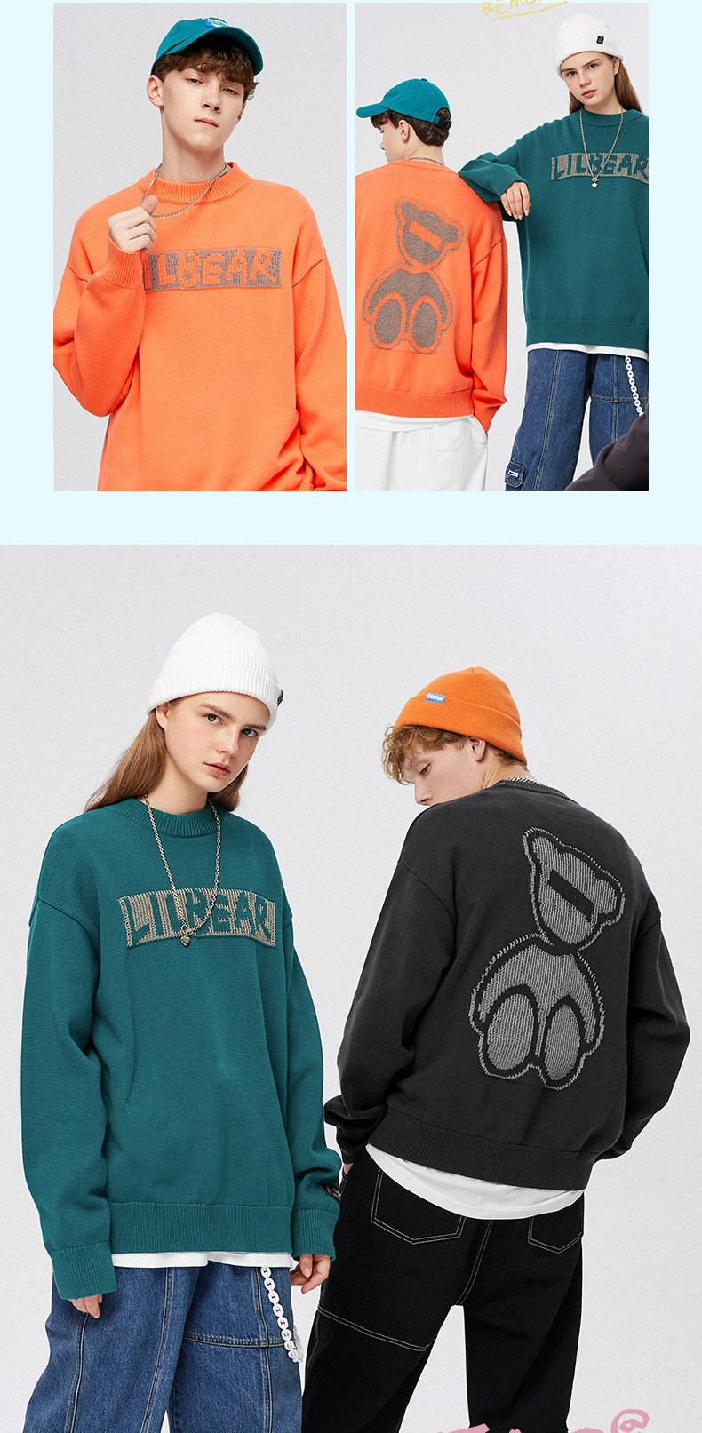 Lilbetter Трикотажный свитер, светоотражающий базовый приятный телу пуховик, трендовая парная одежда для влюбленных, с медвежатами