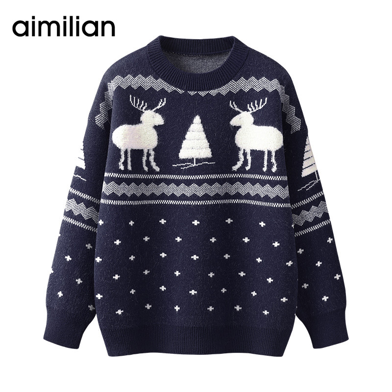 艾米恋 Свитер, демисезонные трикотажные джинсы с начесом с круглым воротником, коллекция 2023