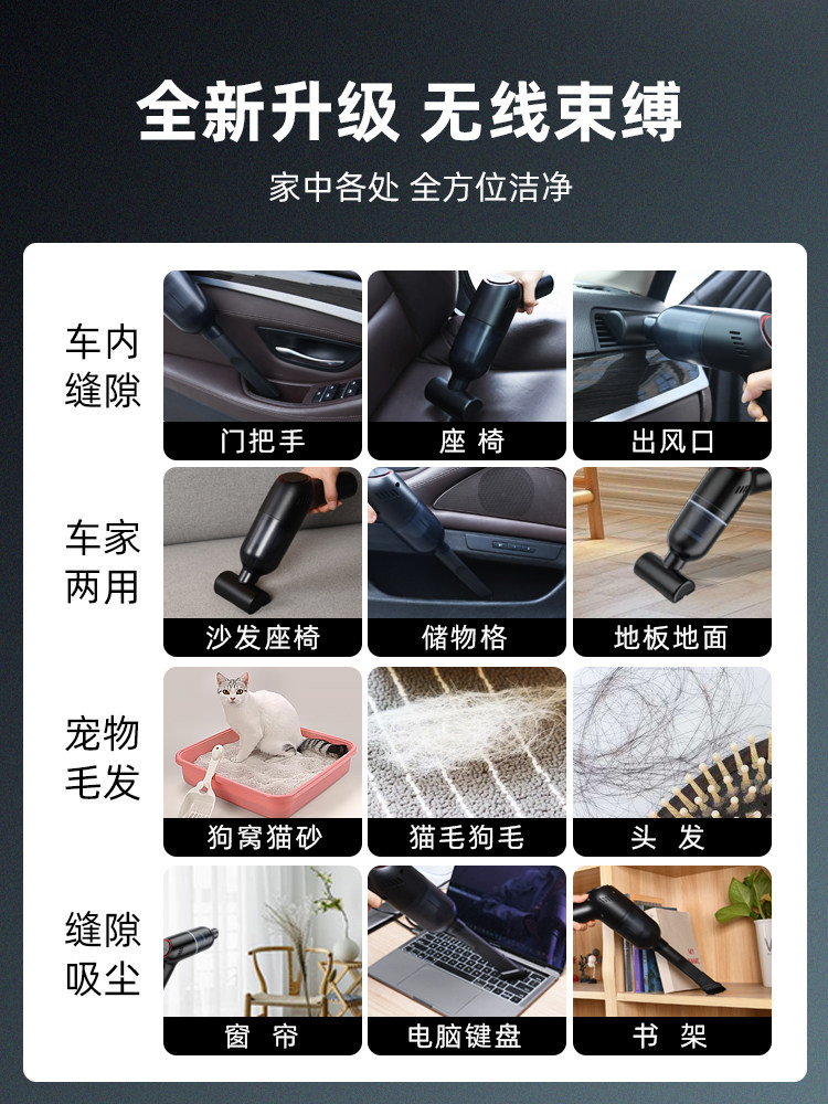 Беспроводной мощный маленький портативный пылесос для автомобиля с зарядкой для домашнего использования, высокая мощность