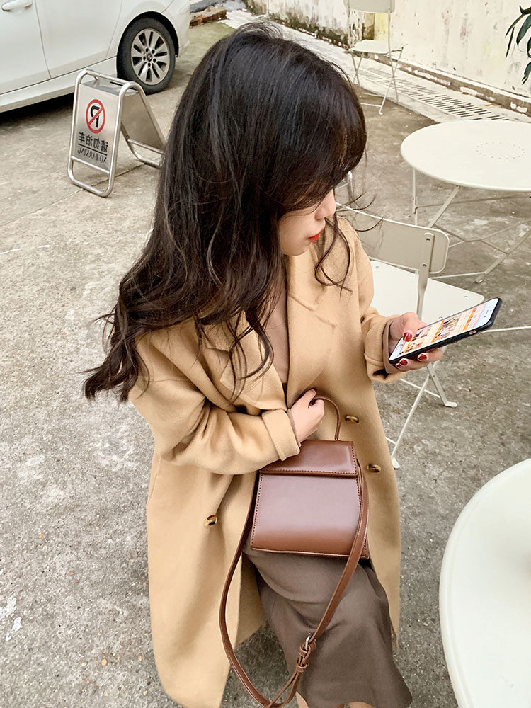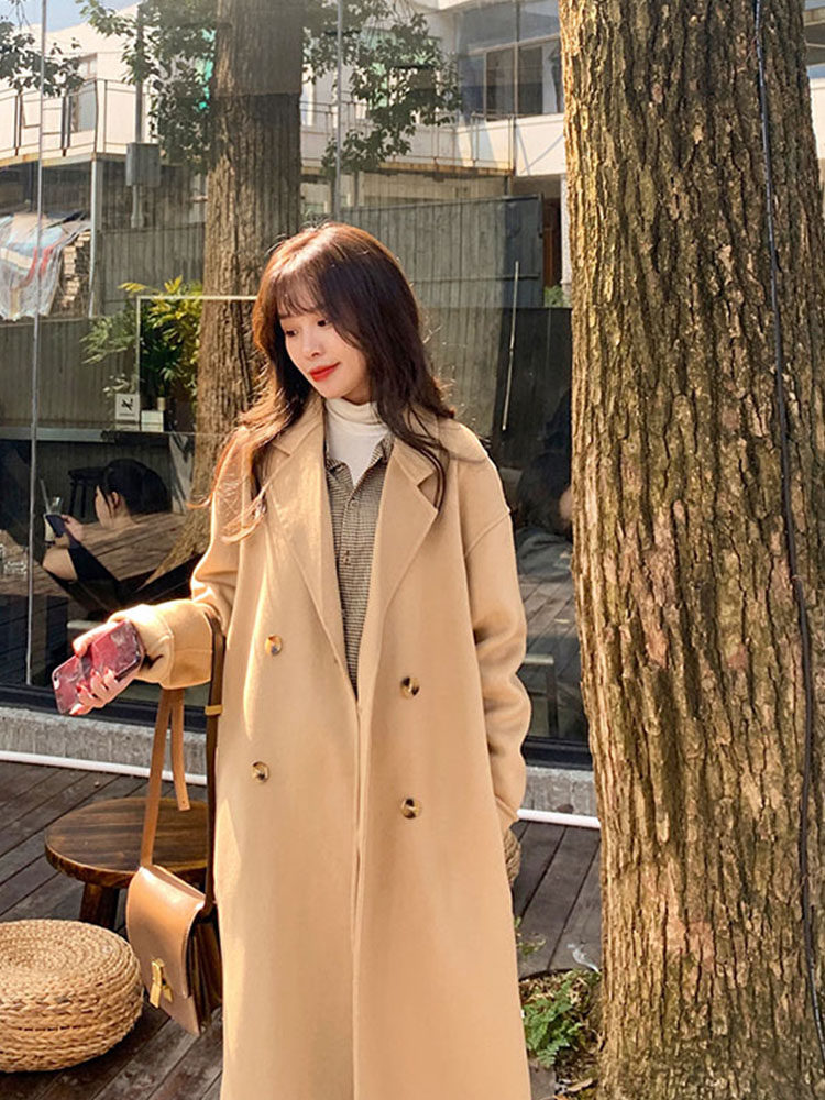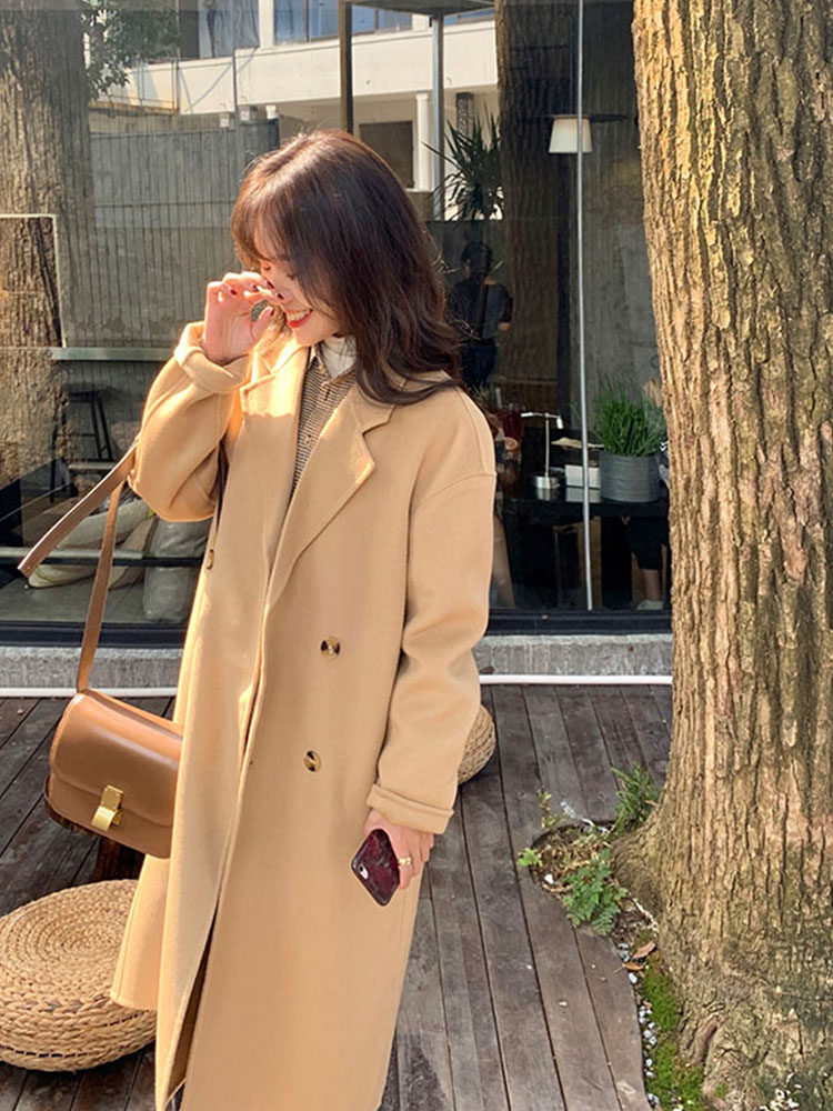 Желтовато-коричневое кашемировое осеннее демисезонное шерстяное пальто, подходит для подростков, 2020 года