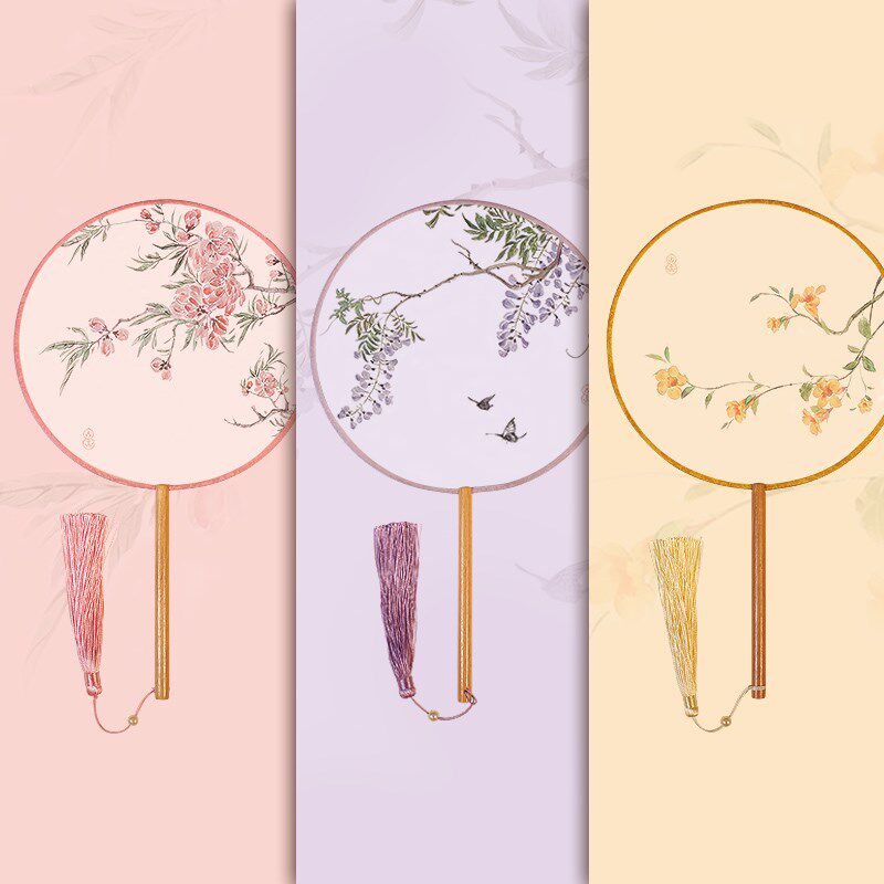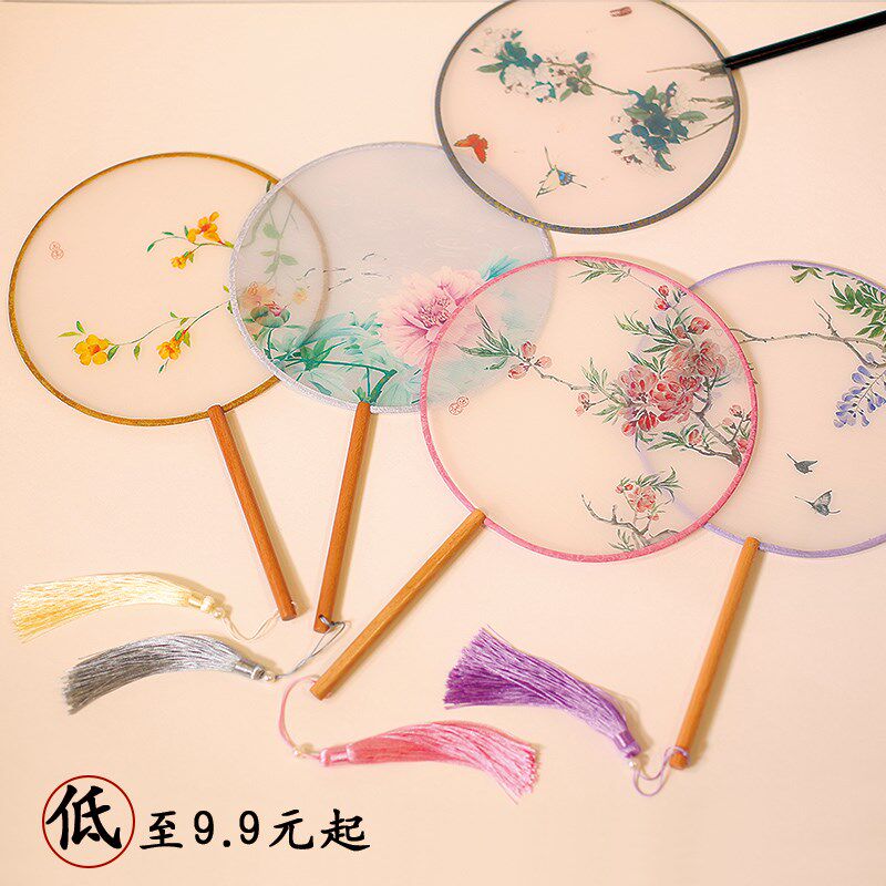 Летний китайский вентилятор, классическое ханьфу, круглый веер, китайский стиль