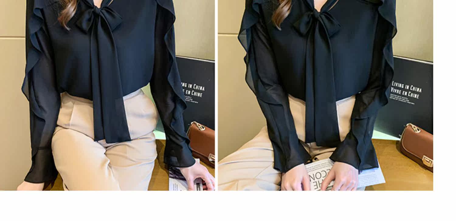 Шифоновый лонгслив, демисезонное термобелье с бантиком, европейский стиль, в западном стиле