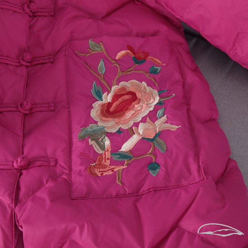 Длинный сверхдлинный ретро пуховик с пухом, этническая куртка, китайский стиль, средней длины, этнический стиль, с вышивкой, большой размер