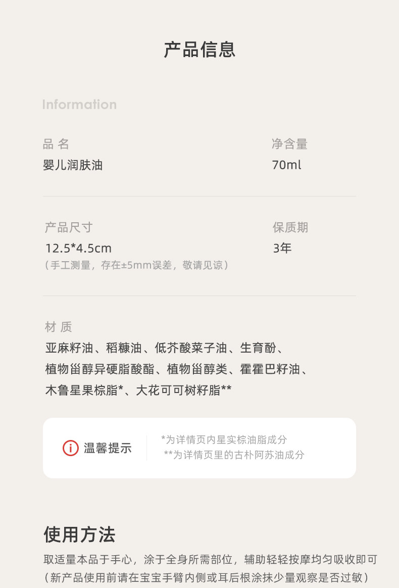 十月结晶 Детское увлажняющее массажное масло для новорожденных для всего тела для ухода за кожей, 70 мл