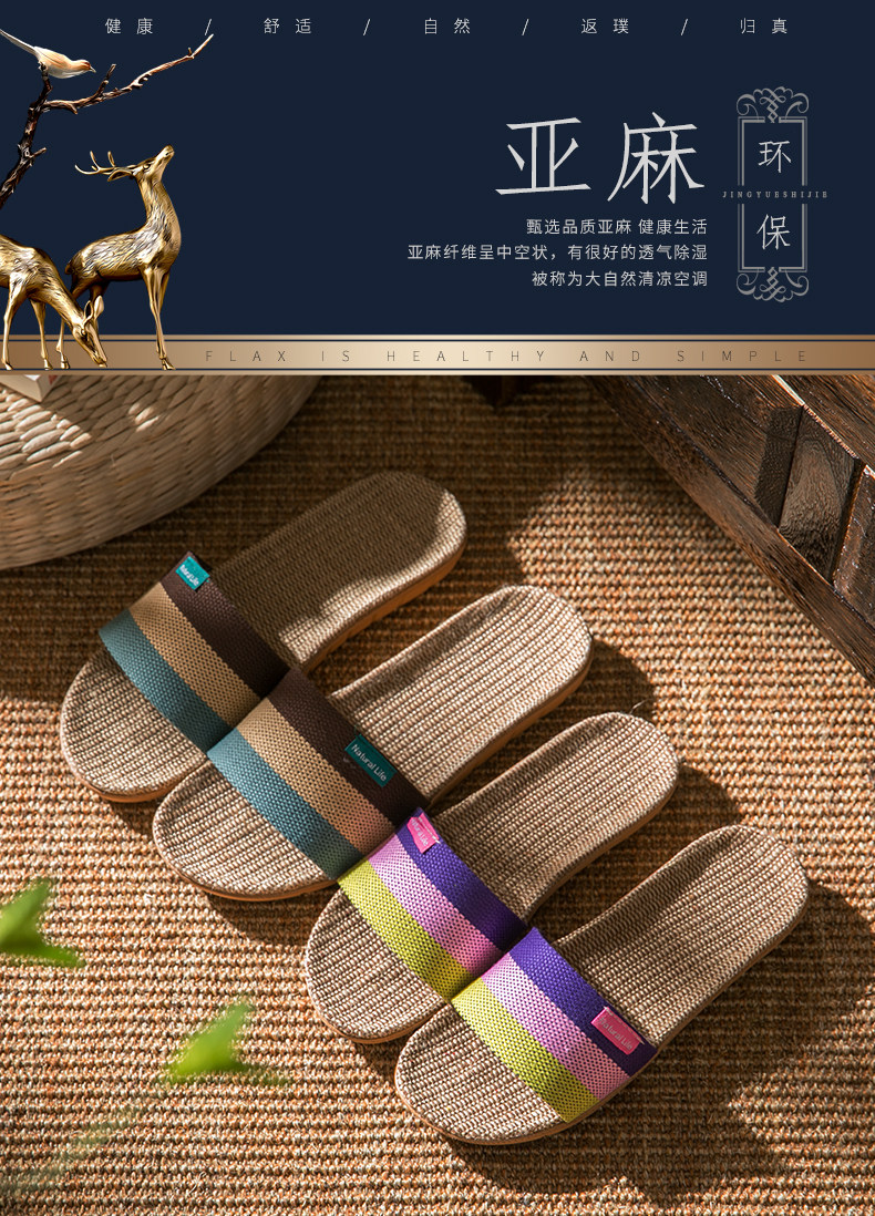 Тапочки, мужская дезодорированная демисезонная обувь для влюбленных, впитывают пот и запах, из хлопка и льна