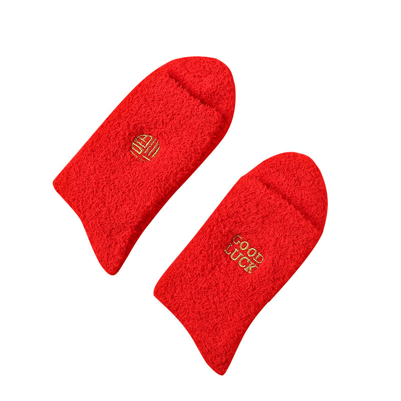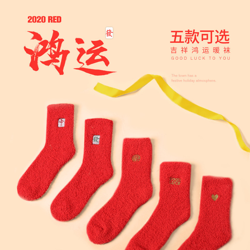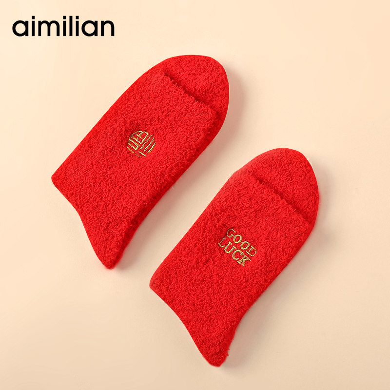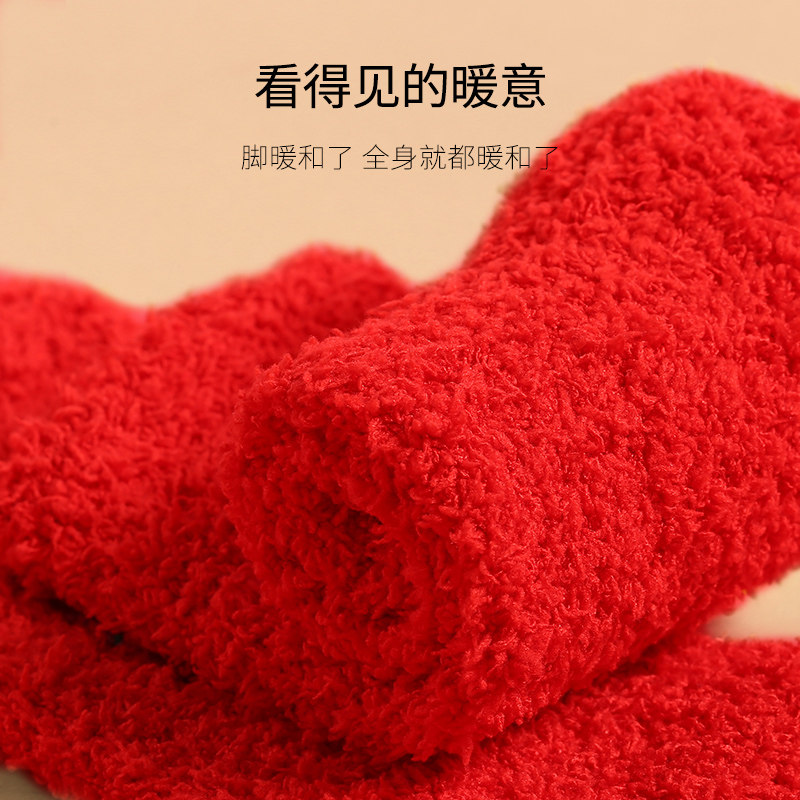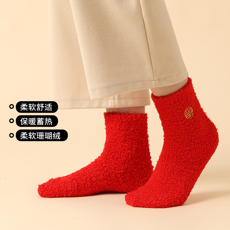 艾米恋 Коралловые бархатные удерживающие тепло носки, красный цветной оберег на день рождения, гольфы, увеличенная толщина, средней длины