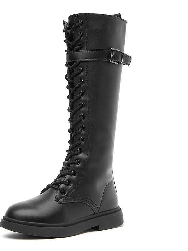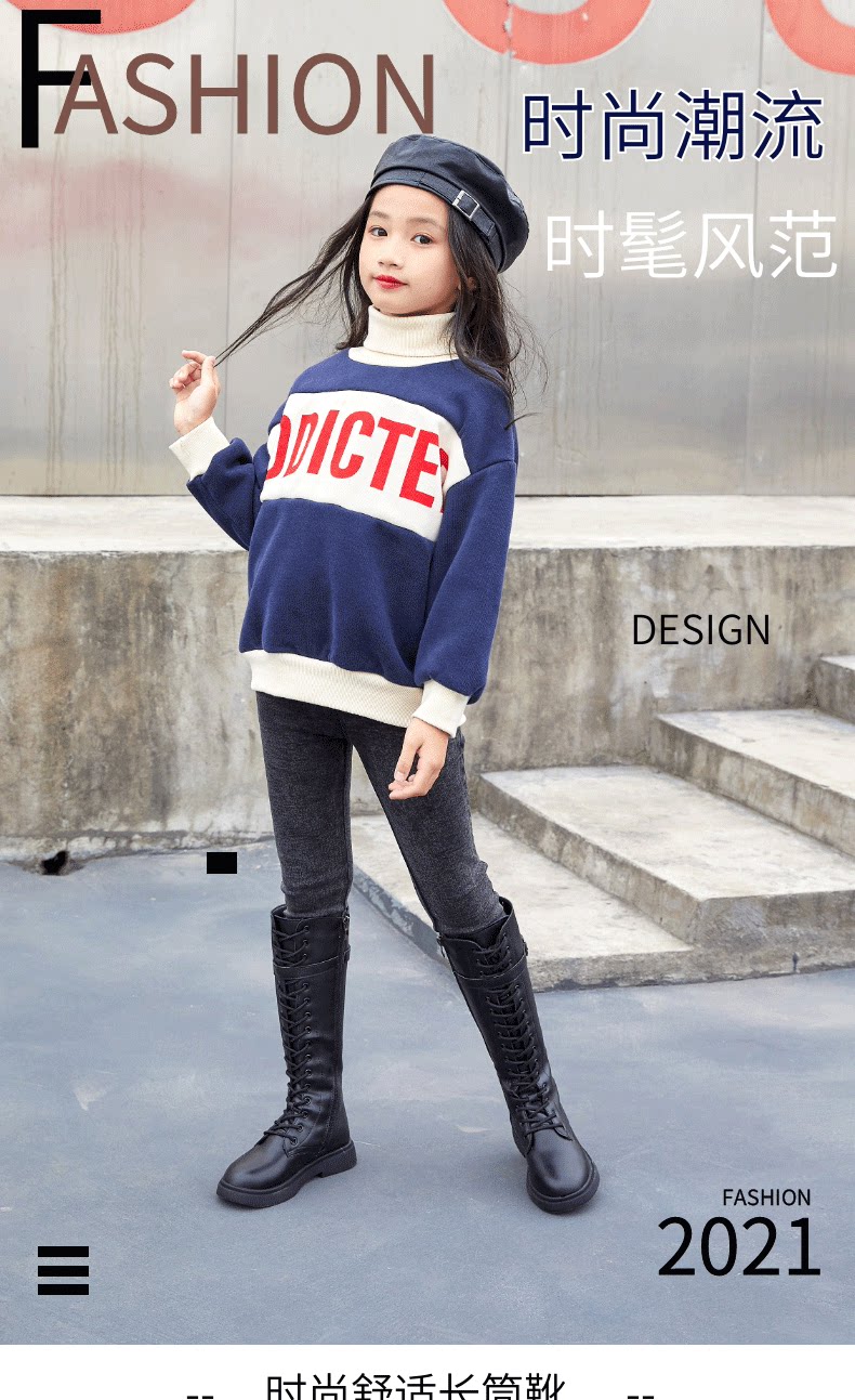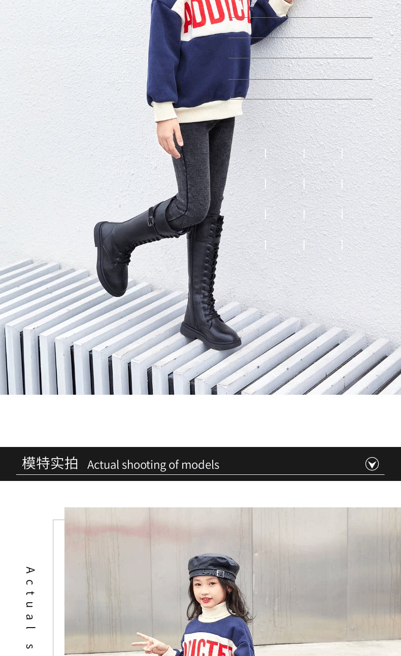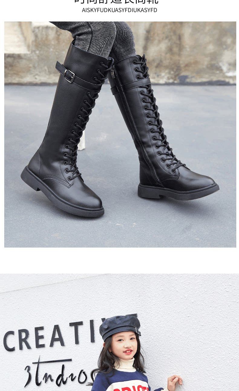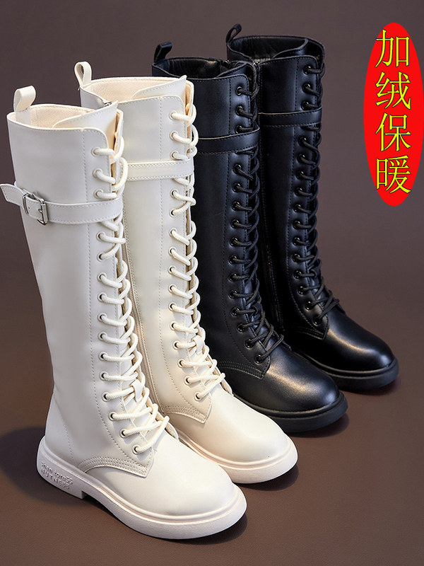 Martens, детские ботинки, демисезонные флисовые высокие сапоги для принцессы, подходит для подростков, средней длины