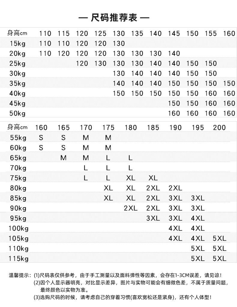 | Размер: | S (80-120 Catties 165 см ниже), М (110-140 котлих 170 см ниже), L (120-160 Catties 175 см ниже), XL (150-180 Catties 180 см), 2xl (170-190 Catties 185 см), 3xl (190-200 Catties 195 см), 4xl (200-210 кот 200 см), 5xl (210-220 Catties 205 см), 110 см (рекомендуемая высота 110-120 см), 120 см (рекомендуемая высота 120-130 см), 130 см (рекомендуемая высота 130-140 см), 140 см (рекомендуемая высота 140-150 см), 150 см (рекомендуемая высота 150-155 см), 160 см (рекомендуемая высота 155-160 см) |