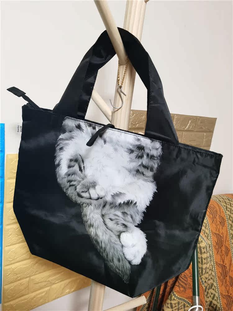 Японская милая черная двусторонная складная сумка для ланча, сумка для еды