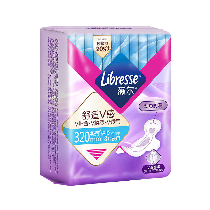 【Интернет-знаменитость】 Libresse Vier Комфорта V-чувства ночи с чрезвычайно тонкой хлопковой санитарной салфеткой 320 м