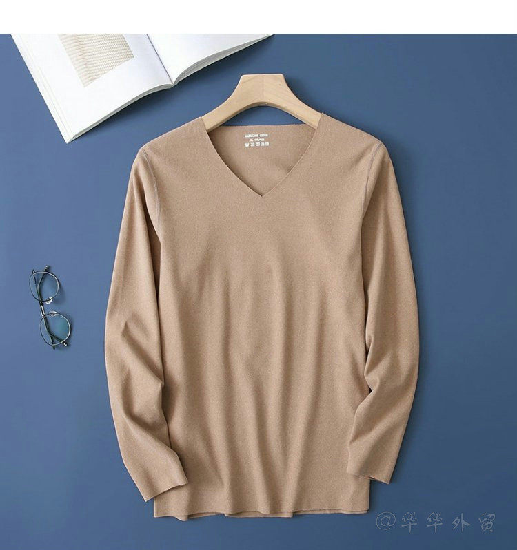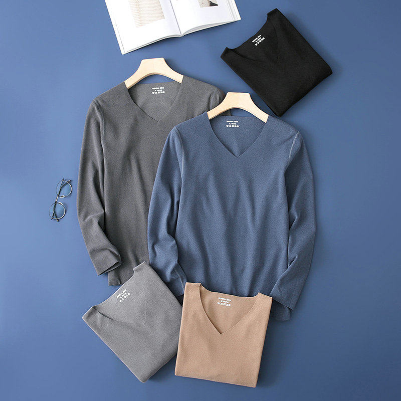 Бархатный демисезонный лонгслив, базовое приятное телу термобелье, V-образный вырез