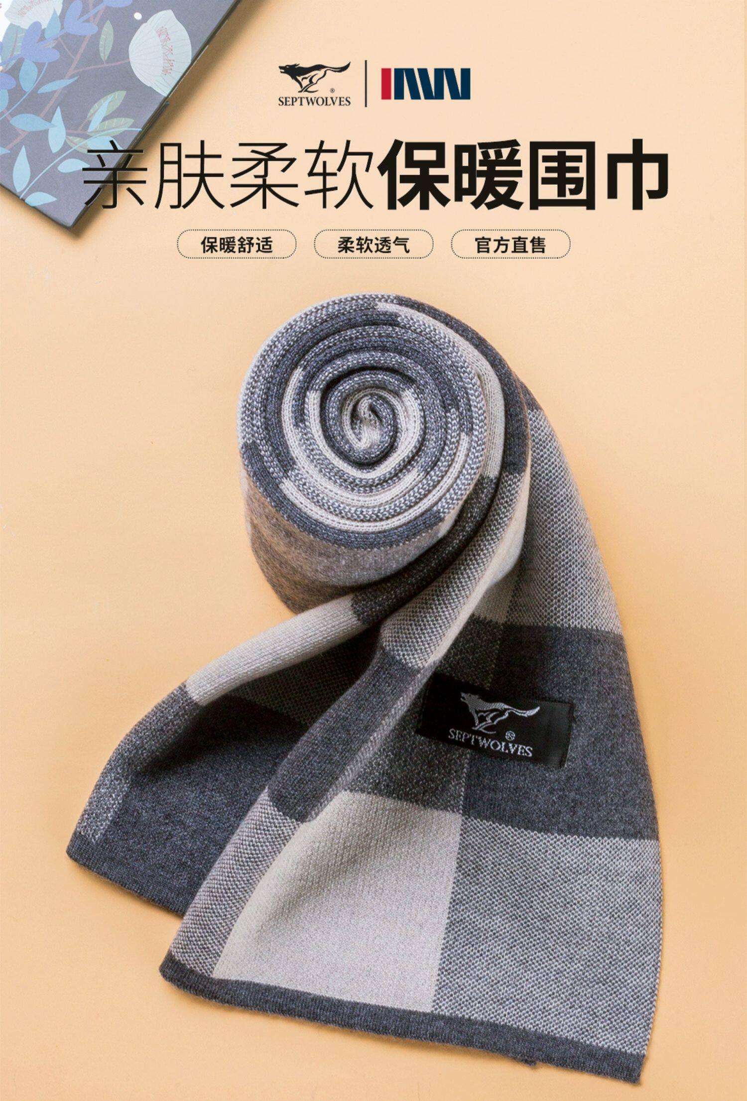 Septwolves, демисезонный удерживающий тепло модный мужской высококлассный универсальный шарф, с защитой шеи