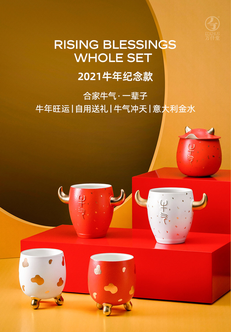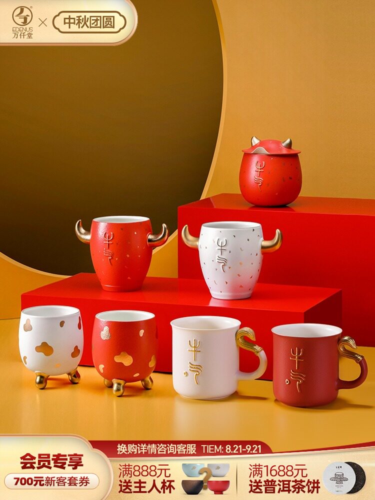 Wanlitang Niu Nian Limited Ceramic Tea Cup Cup Cup Cup Cup Cubls Pare Cup Malke Cup Cup Cup
