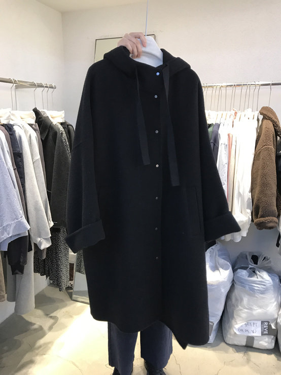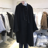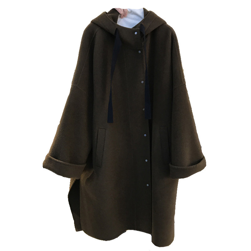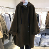 Шерстяное пальто, куртка, зимняя длинная черная толстовка с капюшоном, в корейском стиле, оверсайз, 2023, увеличенная толщина, средней длины