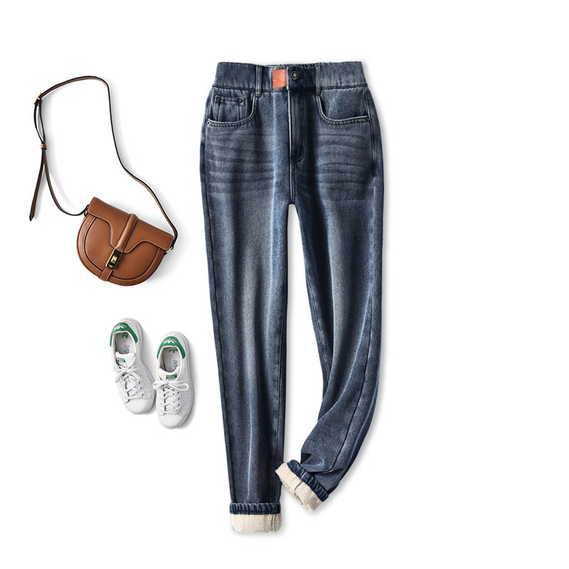 X Очень красивые стираные синие прямые длинные брюки плюс бархатные джинсы для женщин на осень и зиму, утолщающие и стройняющие.