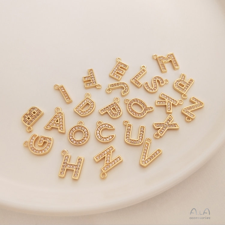 Кварцевая подвеска с цирконом с буквами ручной работы, ожерелье и серьги, аксессуар, 14 карат, английские буквы, DIY