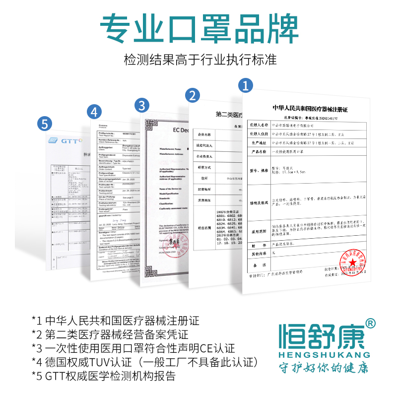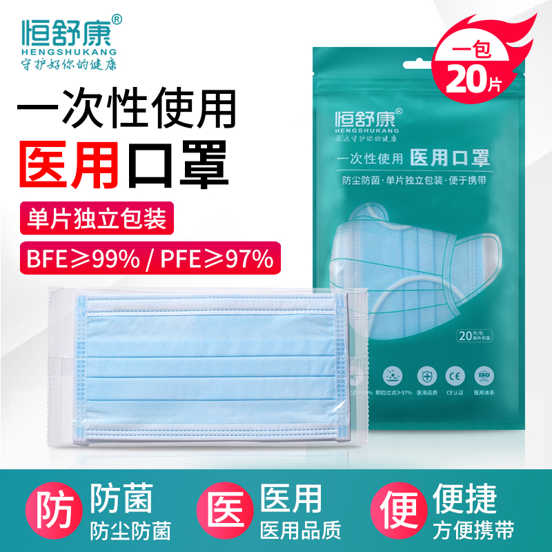 恒舒康 Одноразовая тонкая дышащая медицинская маска, 20 штук