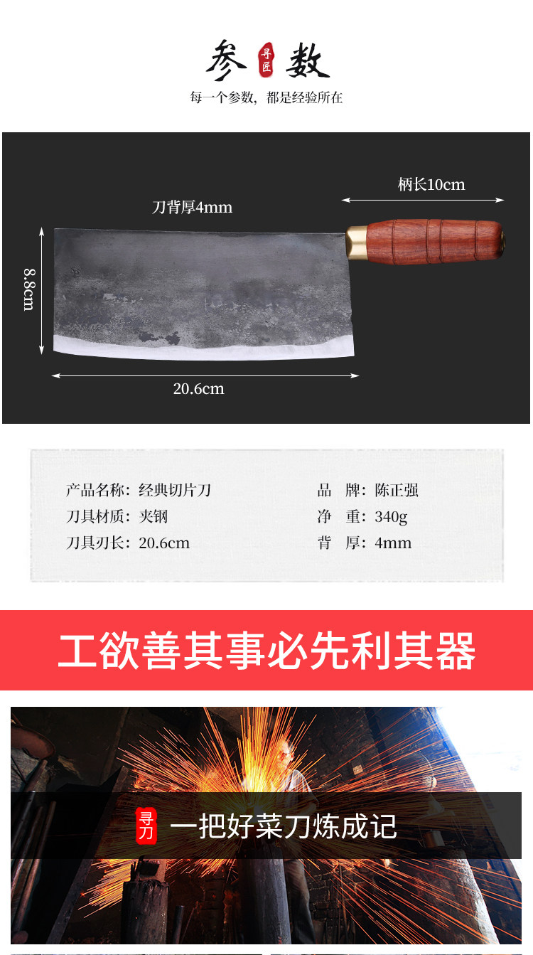 Чэнь Чжэнццян рук -изготовленное стальное кухонное нож традиционный железный овощной нож Кухня Ружа Мясовый нож. Острый нарезанный нож