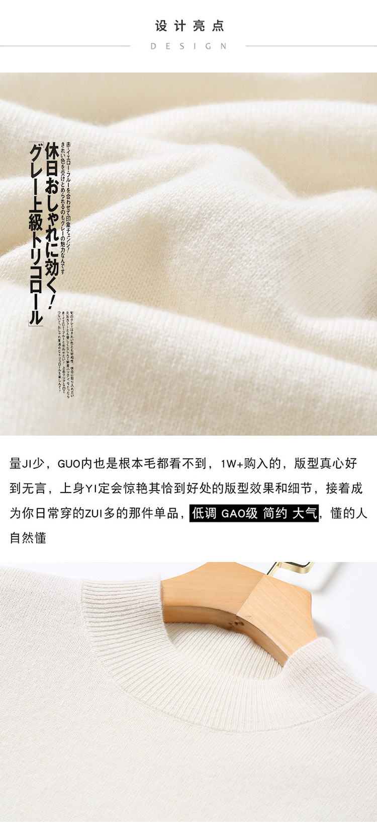 Демисезонный кашемировый шерстяной трикотажный свитер, высокий воротник, оверсайз