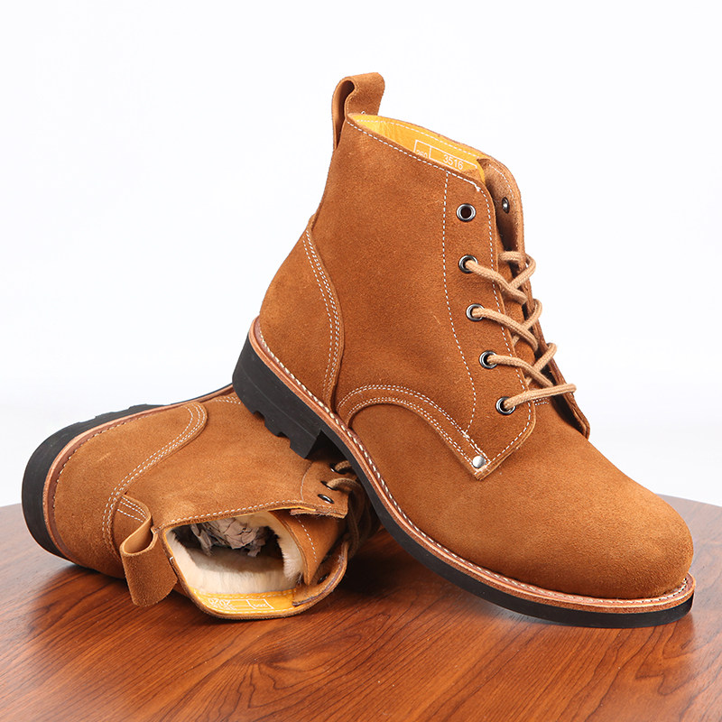 3516 Шерстяные теплые кожаные ботинки Land and Air Warrior Высокие хлопковые кожаные туфли Зимние флисовые хлопковые ботинки из натуральной кожи Уличные альпинистские ботинки для мужчин