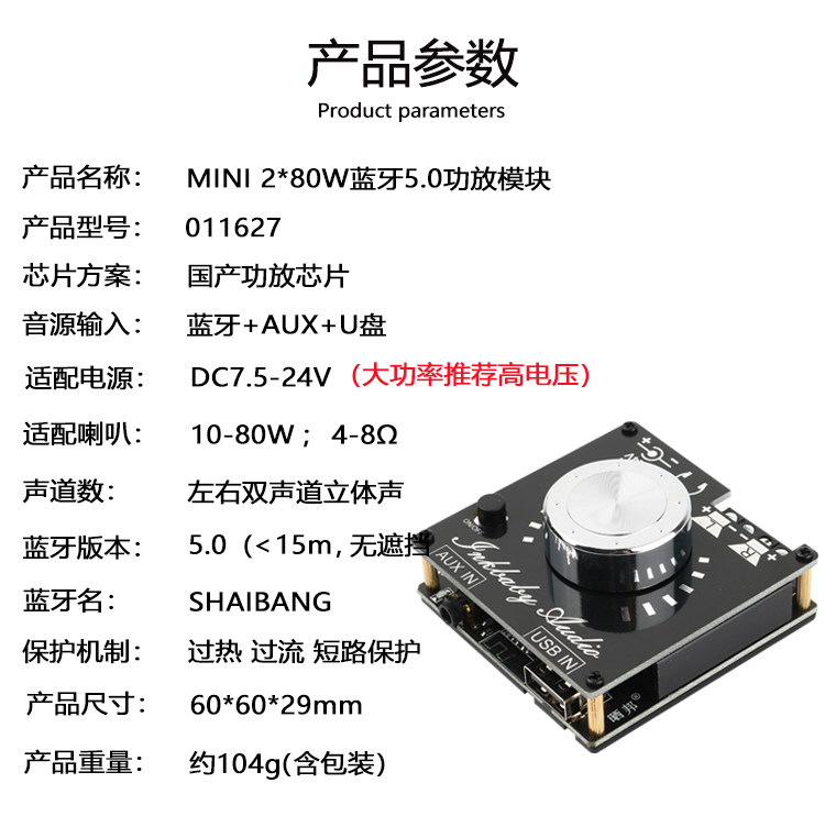 Bluetooth 5.0 Digital Plate Stereo 80W*2 Поддержка U Disk Aux Input DIY Audio Amplifier модуль