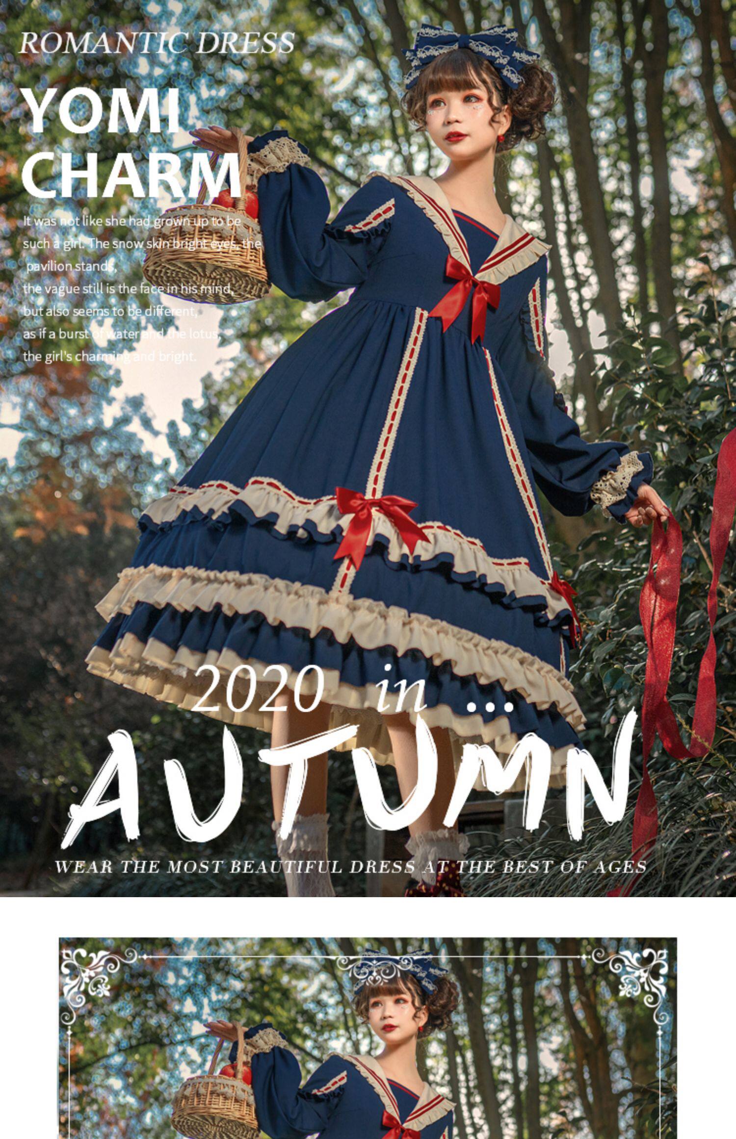 Оригинальный осенний лонгслив, юбка, стиль Лолита, Lolita OP, (в наличии на складе)