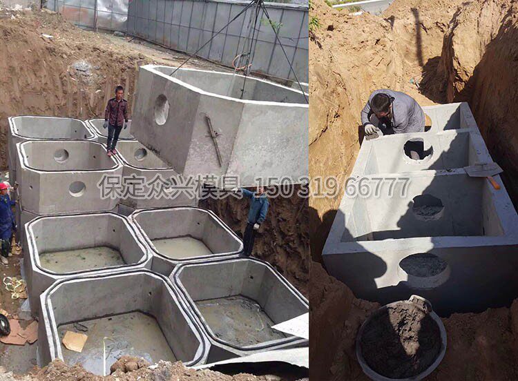 Цементный септический шлифовальный бак посуда, смешанная с почвой Новой сельский сельский трехформный цементный скважина.