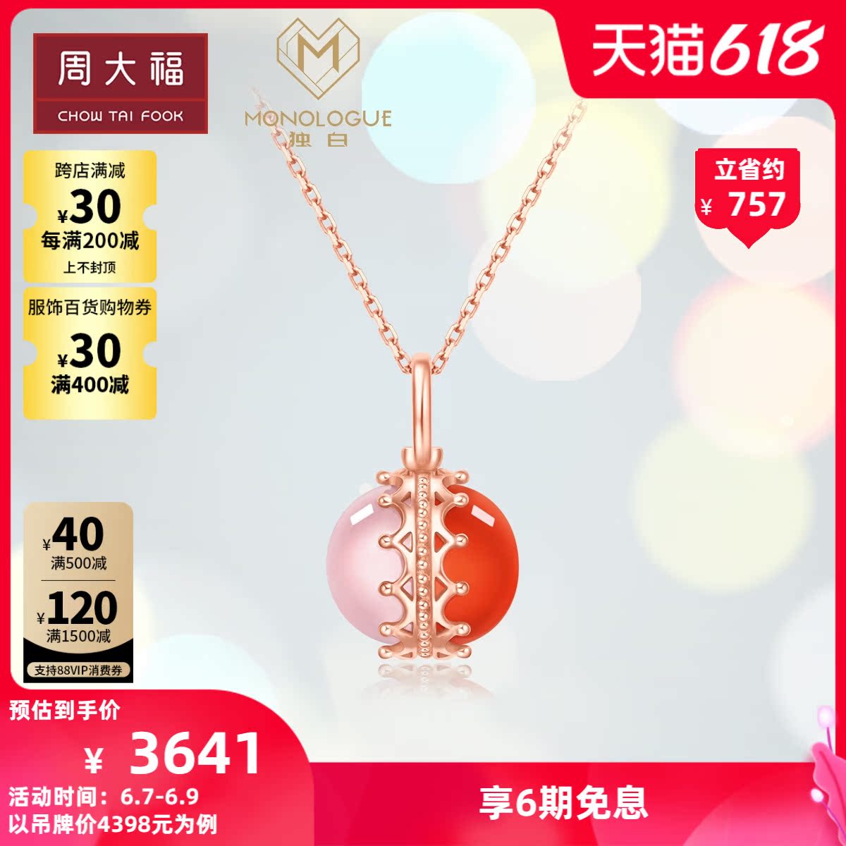 周大福 Монологический монолитный сплиттер, 啵 啵 啵 啵 啵 啵 啵 18k золотого ожерелья подвеска MV MV MV с множественным интересом