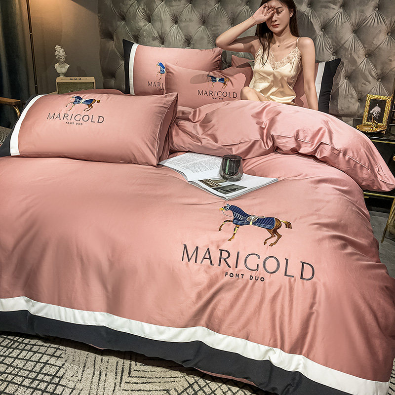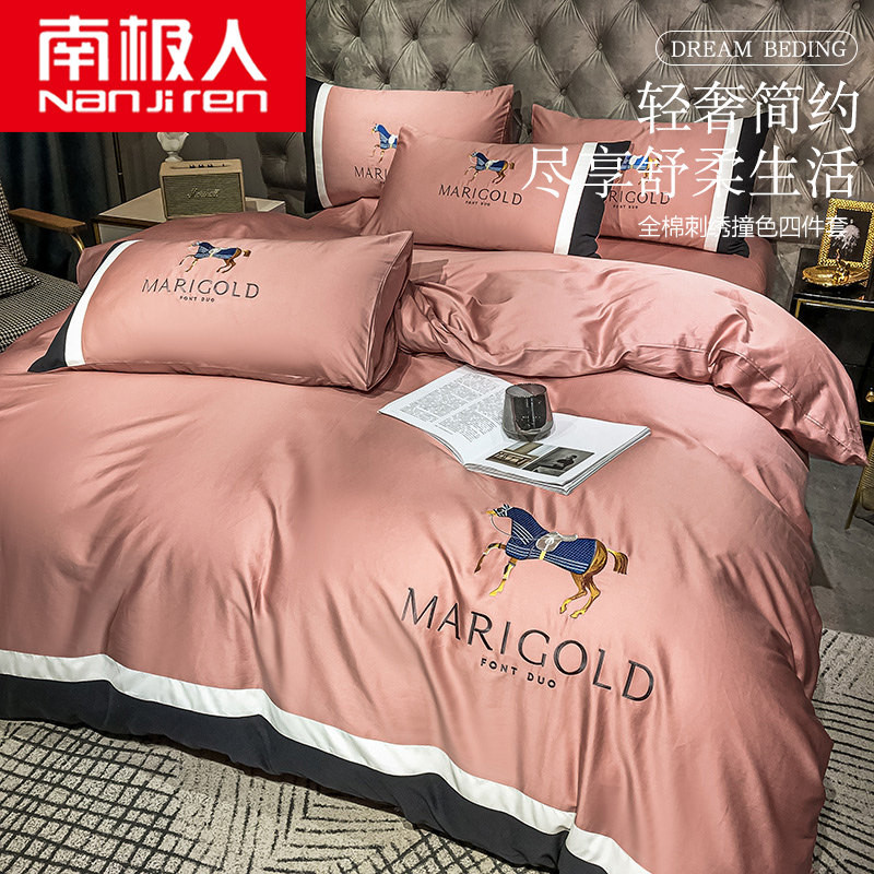 南极人 Хлопковый комплект, простыня, пододеяльник, покрывало, с вышивкой, 4 предмета, простой и элегантный дизайн, скандинавский стиль