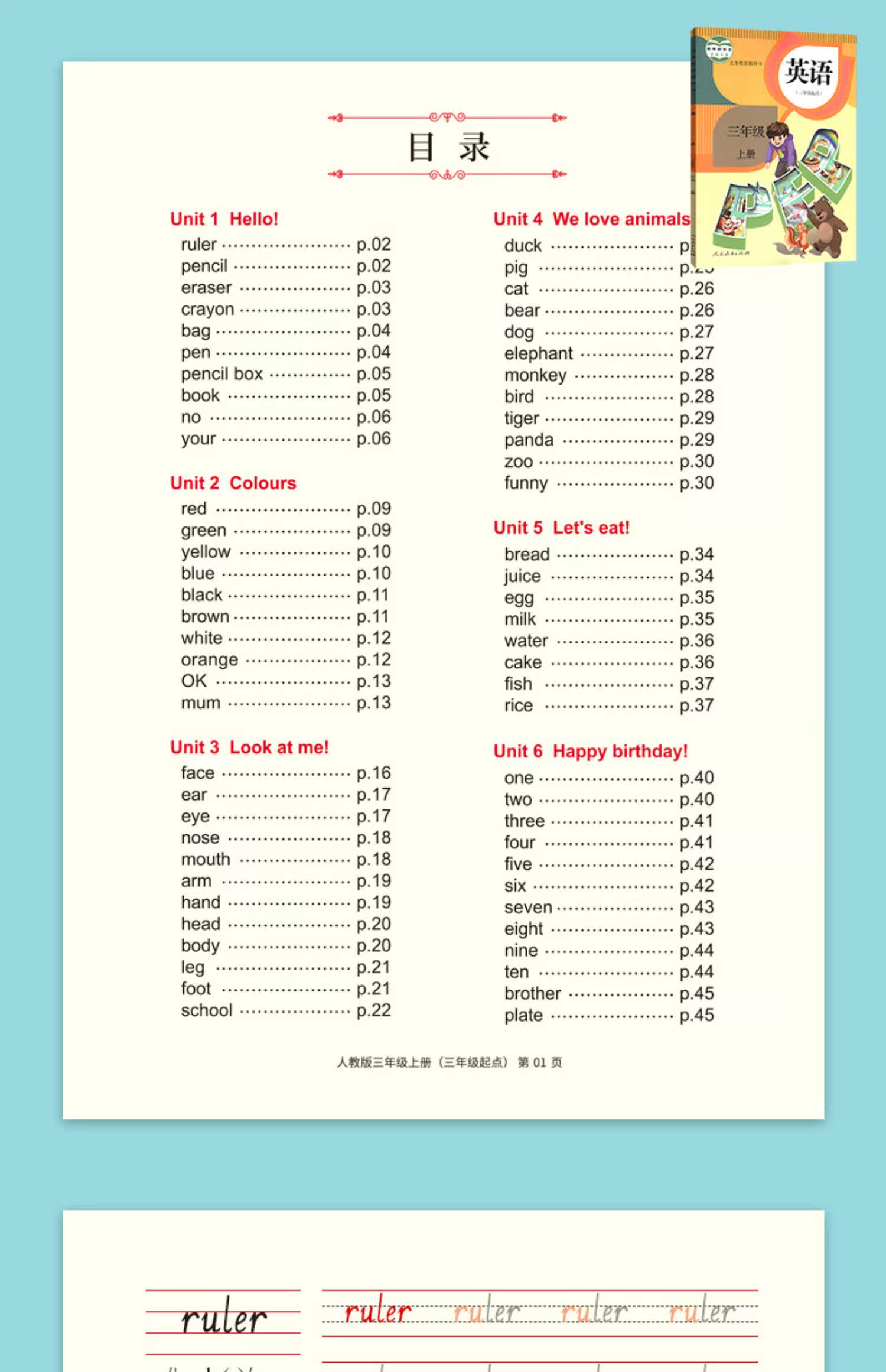 - Pep People's Education, версия для третьего класса, том 1 (отсканируйте, чтобы прослушать аудио)